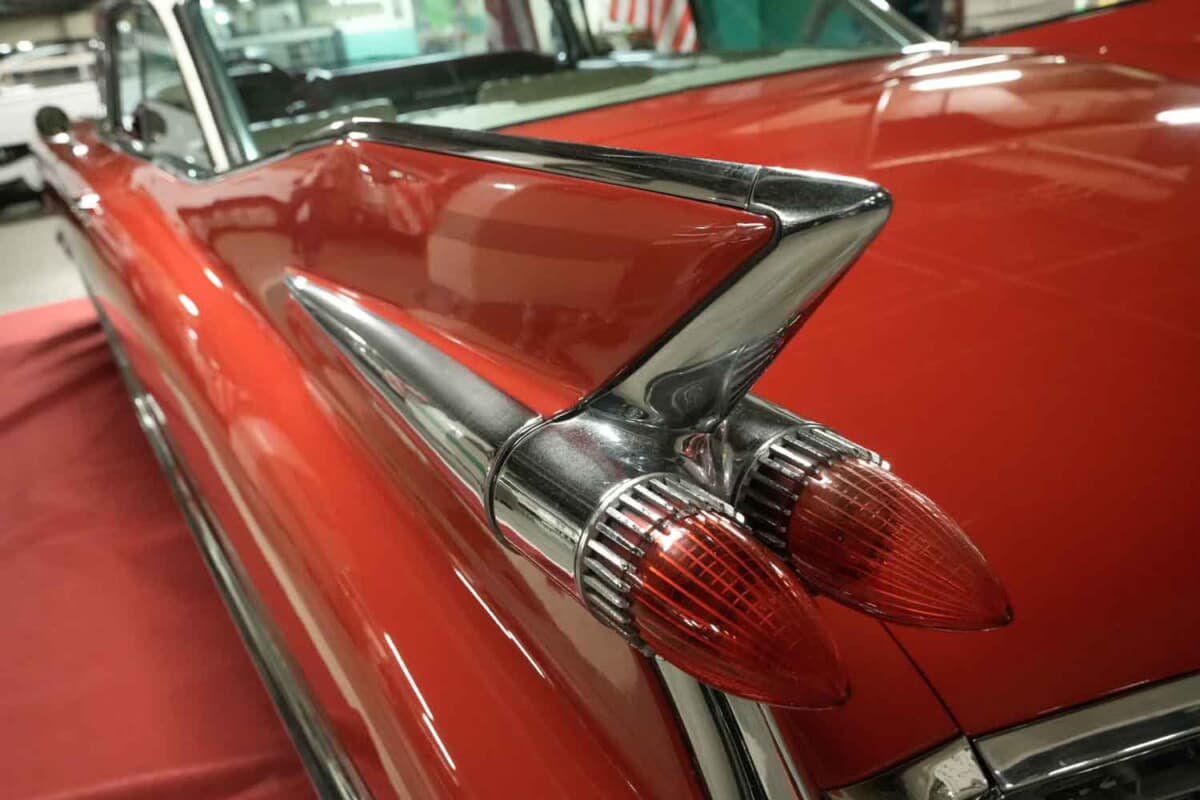• キャデラック ドゥビル クーペ:赤いボディカラーにホワイトのビニールレザーでできたベンチシート。アメリカの象徴といえる