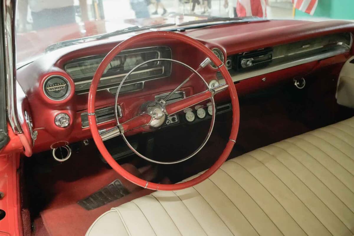 • キャデラック ドゥビル クーペ:ベンチシートにキャンディカラーのインパネも、古き良きアメリカの雰囲気だ
