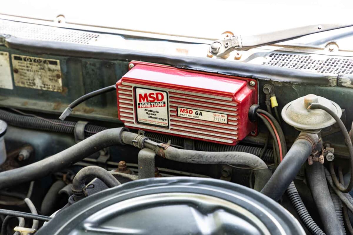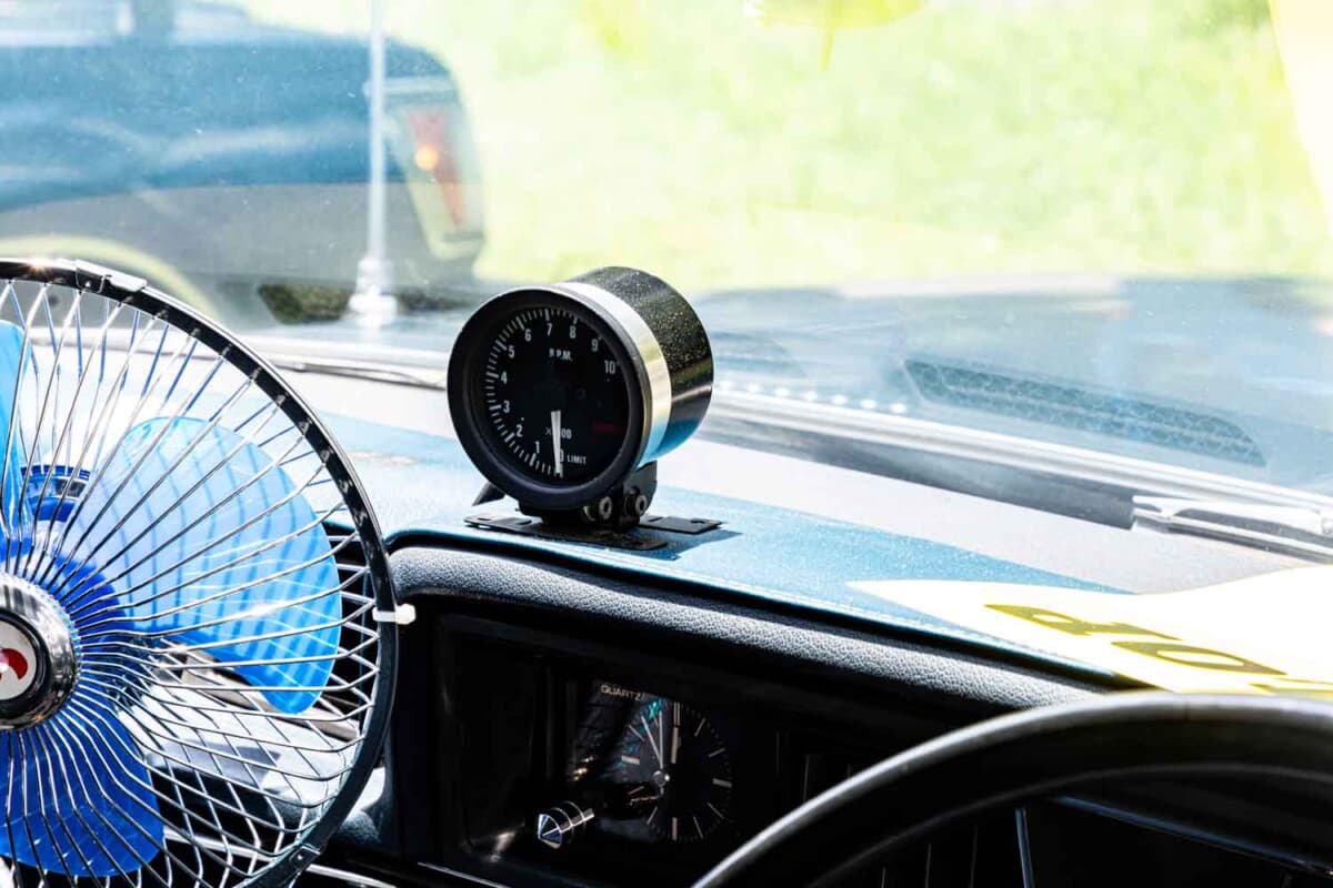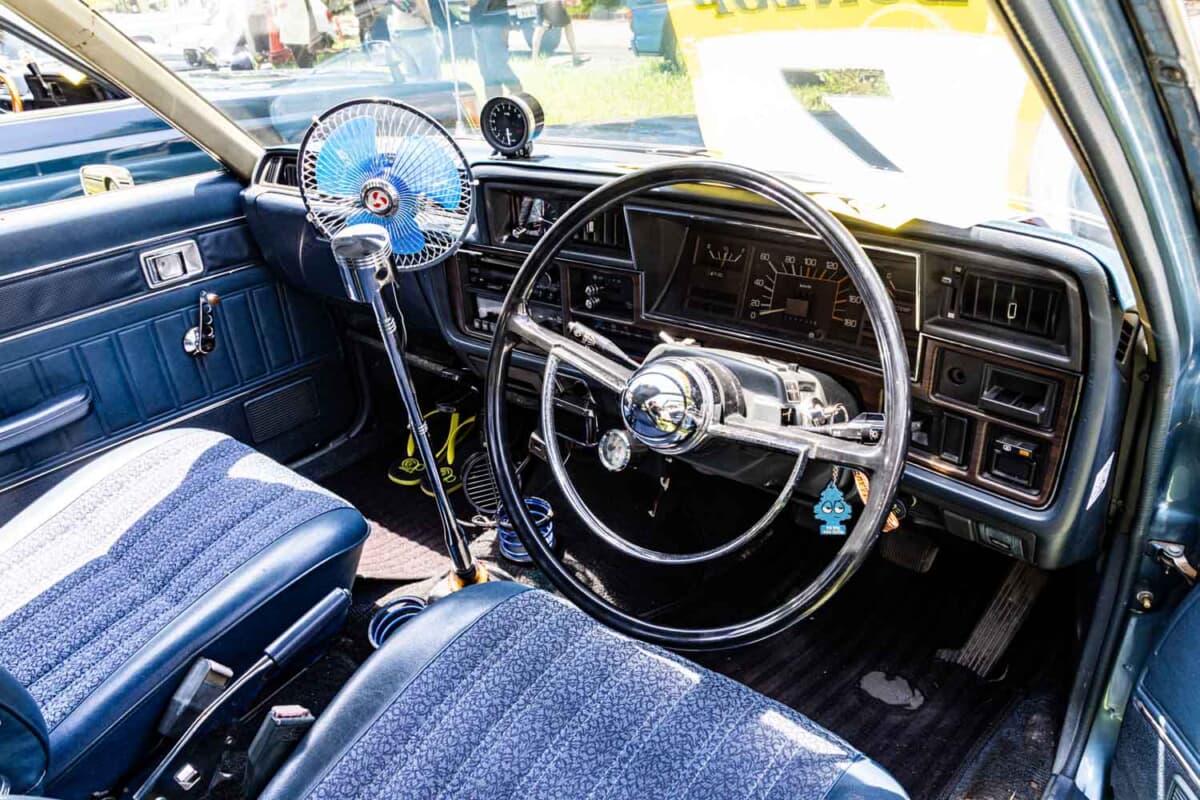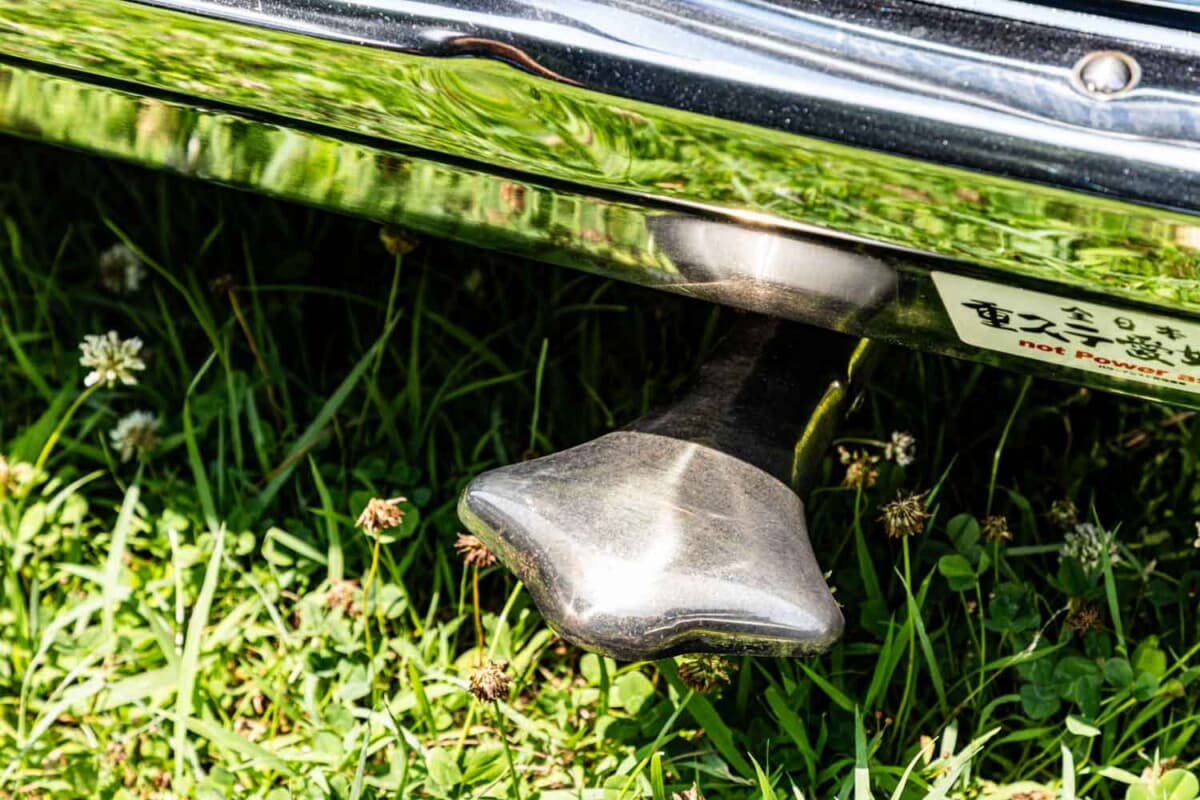 あまりいじっていないと佐々木さんは言うが、足まわりはフロントはスプリング、リアがブロック(4インチ)でのローダウンとなっている。さらにホイールはAHPの5スポーク、追加メーター、シフトノブ、トヨタ「スタウト」純正ステアリング、ムーンアイズのマフラーカッターなどでカスタムされている。カスタムしている部分以上に、すでに45年もの年月が経っているクルマだけに、トラブルやメンテナンスの状況も気になるところだ。