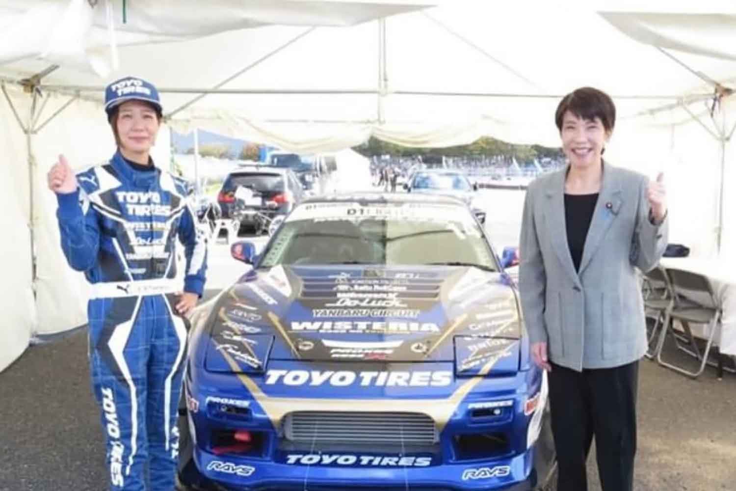 旧聞になりますが、2025年初頭。D1グランプリ最終戦・東京台場に来賓として高市首相が姿を見せました。当時はまだ総理大臣ではなく、自由民主党総裁としての立場。MCの紹介では、(衆議院議員)となっていました。国会での指名選挙の結果、総理の座は石破氏に敗れた時期です。 観客席から拍手が起こるなか、日産シルビアのドリフトマシンの助手席に乗り込んで登場。マイクを向けられると、第一声はこうでした。