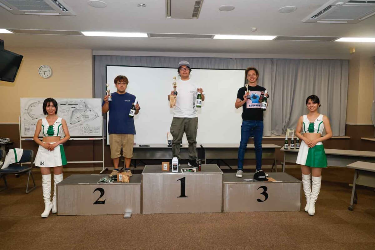 しかし入賞した車両に対して行われるレース後の再車検で、岡部のマシンがレギュレーションで定められた車重より軽いことが発覚し、残念ながら失格となり岩塚がHA36カップ初優勝を果たす。予選からポジションを落としてチェッカーを受けただけに素直に喜べないかもしれないが、決勝のファステストラップも獲得していることからもわかるとおり、速さは疑うべくもない。次の最終戦では岡部たちとのさらなるバトルが期待される。なお岡野も同じく車両重量違反で失格となり、準優勝は初めての表彰台となる310#佐藤翼、3位は開幕戦に続き596#田中翔馬となった。