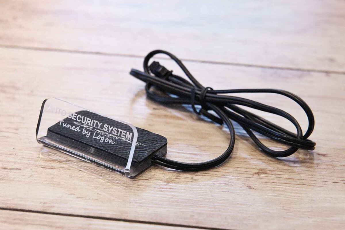 オーサーアラーム製品の装着を視覚的にアピールできるLEDスキャナー。赤く点滅するブラックベースのスキャナーは、他では手に入らないログオンオリジナルスペックだ。