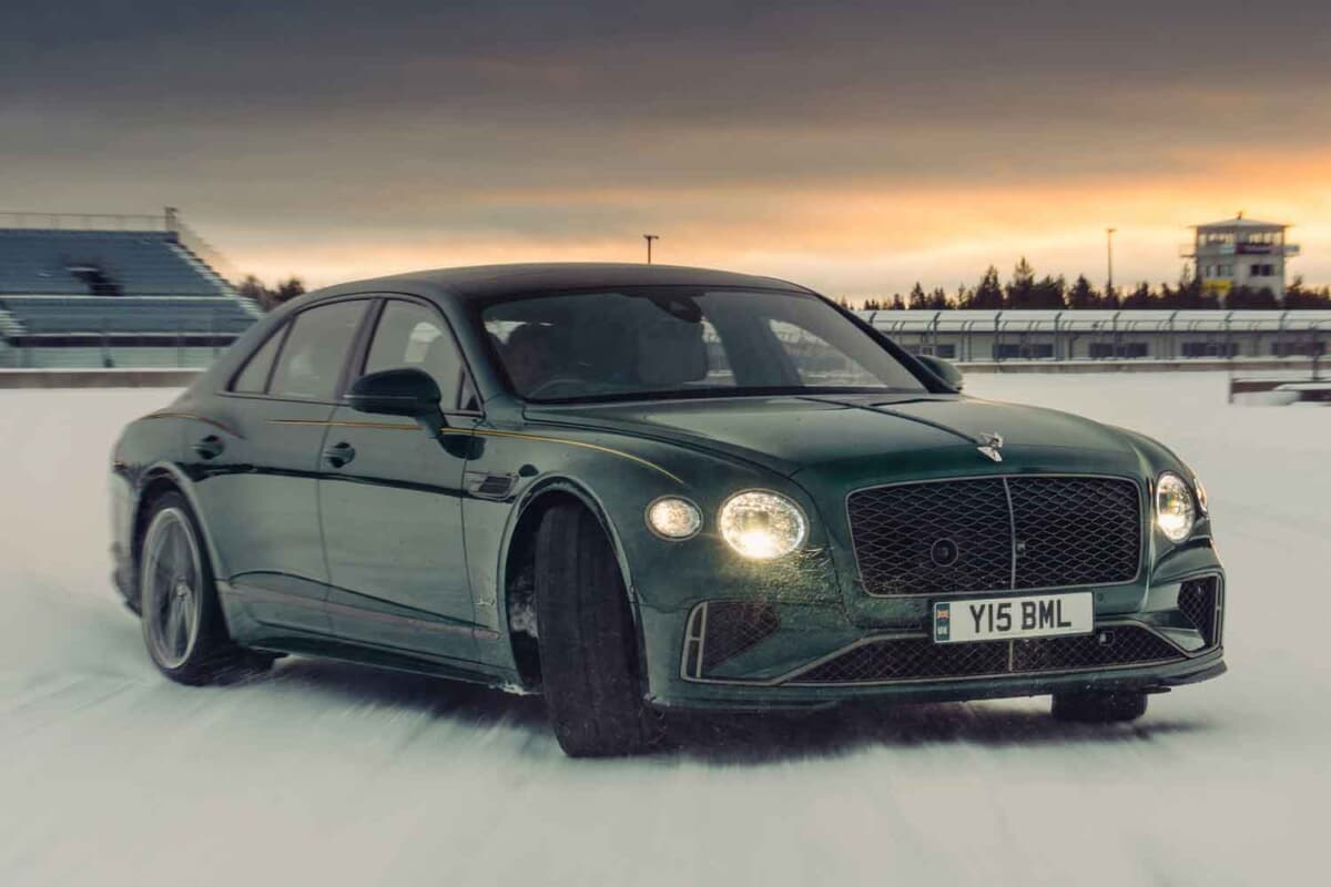 ベントレーの新型フライングスパー・スピードが、世界で最も北に位置する稼働中のサーキットであるスウェーデン北部のドライブセンター・アリーナで、冬季条件下でのラップレコードを更新しました。全長3.3kmの氷雪に覆われたコース走破タイム2分58秒は、同地での冬季最速記録です。使用した車両は市販車と同じ量産仕様で、専用のスタッド付き21インチ冬用タイヤのみの装着。最高速度は約193km/hでした。