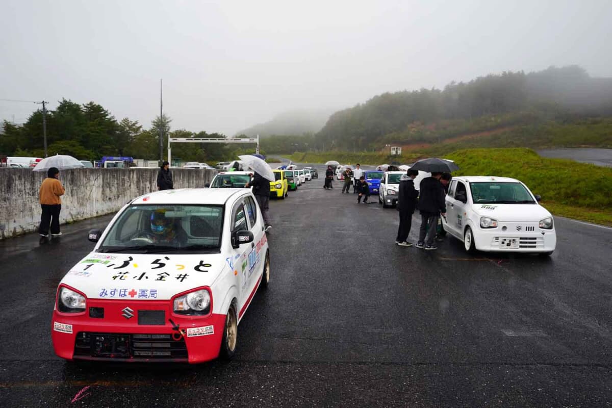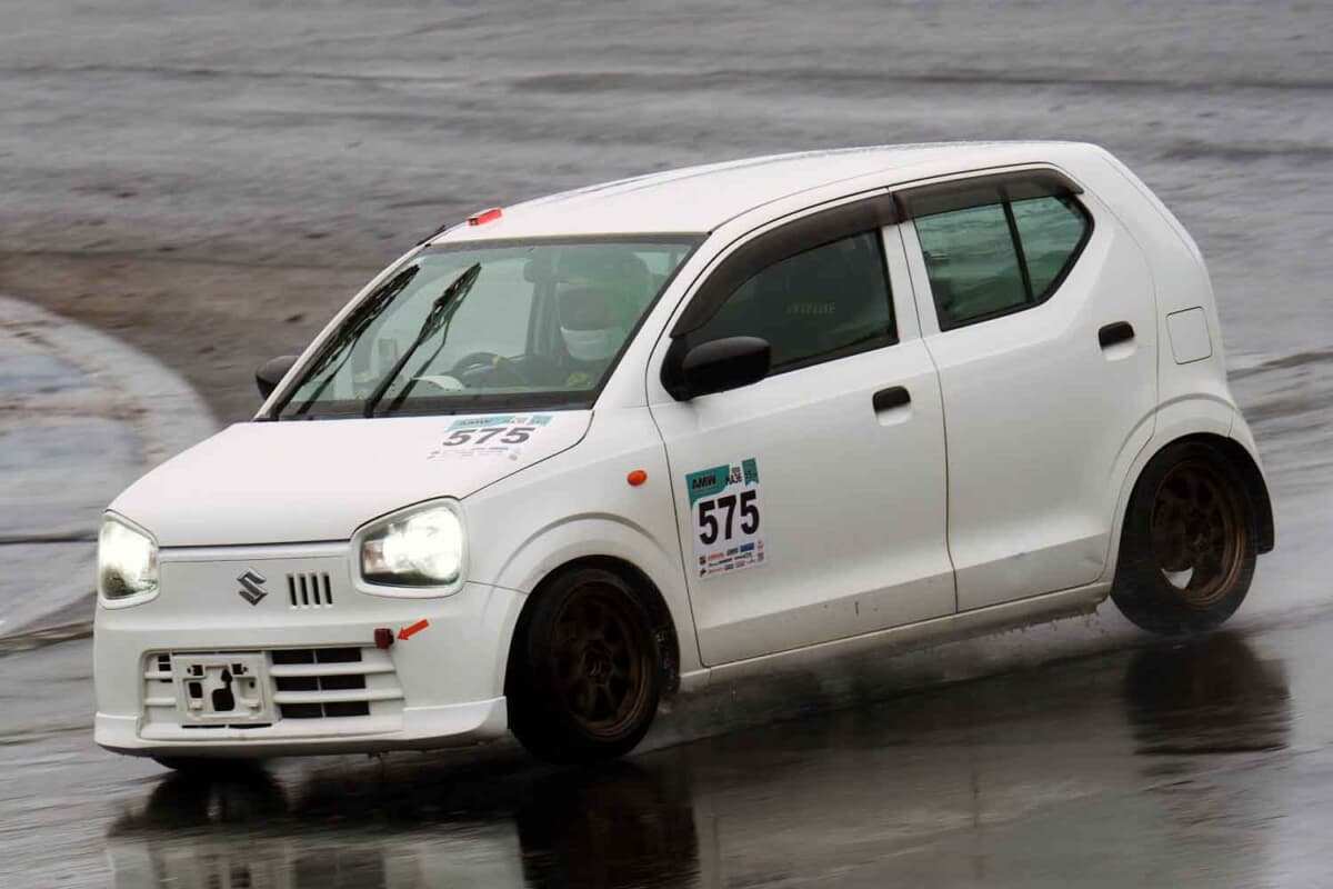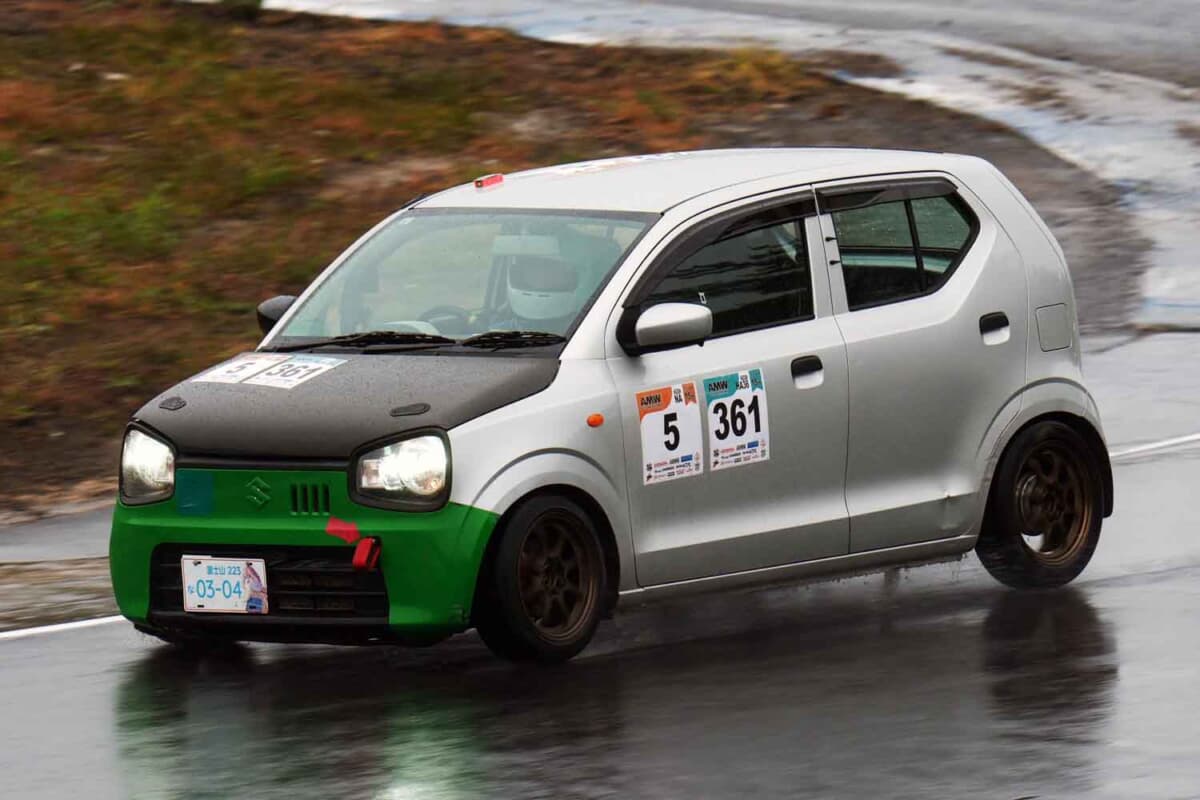 2025年10月26日。NAエンジンのHA36アルトによるワンメイクレース、「東北660・HA36カップ」の第3戦がエビスサーキット西コースで開催された。全3戦で行なわれるシリーズの最終ラウンドというだけあり、どのドライバーも自身のランキングをひとつでも上げようと、雨が降り注ぐなか入念に走り込み、セットアップを重ねていた。