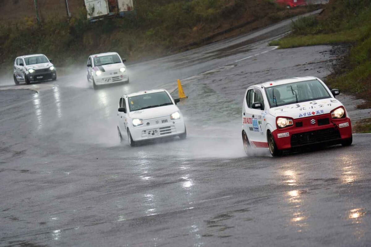 HA36型スズキ「アルト」のワンメイクレース「東北660・HA36カップ」のシリーズ最終戦が、雨が降り続くエビスサーキット西コースで行なわれました。ドライバーの腕と判断力が試される難しいコンディションでのタイトル争い。前戦の雪辱を晴らすべく快走する選手や、初挑戦で存在感を示した新たな顔ぶれの登場など、見応えのあるレースとなりました。シリーズを締めくくる最後の激戦の模様を、クラス別に振り返ります。