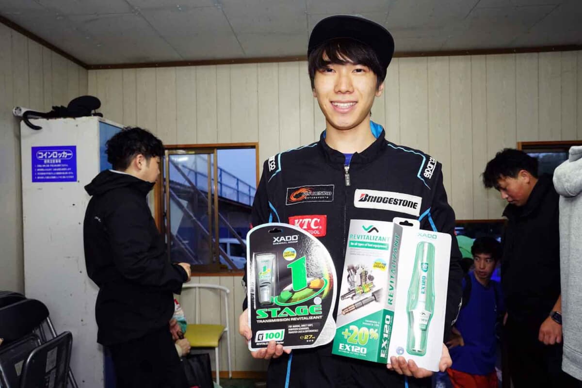 雪辱に燃える今回はウェイトを積んで重量を合わせ、腕の差が顕著に出るウェット路面で実力を証明。遅れること約0.4秒差で2番手につけたのは、JAF公認レースでも活躍した大ベテランの姉・珍、3番手は岡野のチームメイトで、同じく第2戦を最低重量違反で失格となった963#岡部皓輝だ。