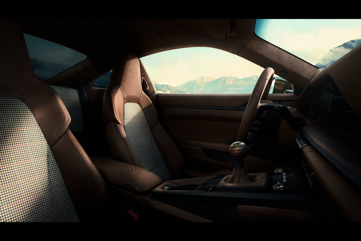 シートは5色の糸で織ったF.A.ポルシェ愛用のジャケットの柄を採用