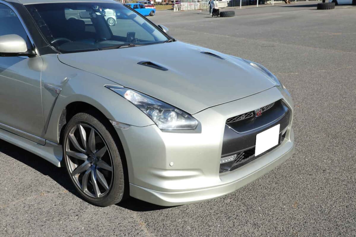 まずは作業を進めるべく、R35 GT-Rの純正バンパー、フェンダー、ボンネット、ライト、マーカーといった部品を調達。そこから、どのように加工を施せば移植できるかの検証を行った。寸法が合わないことは承知していたが、いざ進めてみると一筋縄ではいかなかった。実際の作業では切る、詰める、曲げる、ねじるといった、あらゆる大掛かりな加工を駆使した末に、ようやくR35 GT-Rスタイルを完成させたのだ。