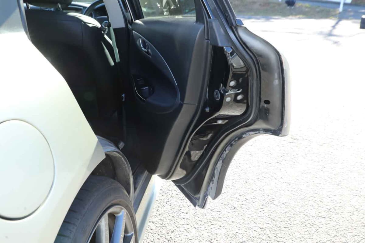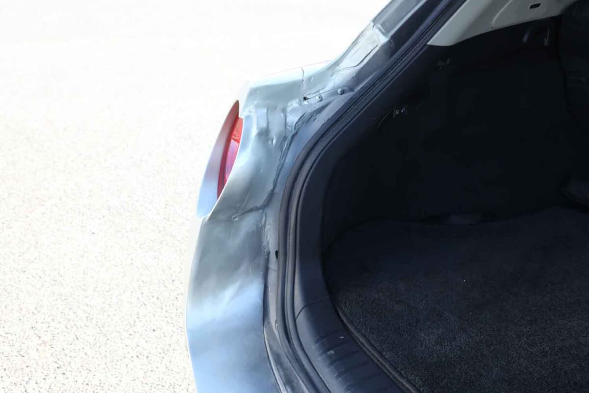 言葉にすると簡単だが、作業は加工の連続。とくに大変だったのがフロントフェンダーだ。大幅に詰めているが、R35 GT-Rならではのブリスターフェンダーのデザインやダクトはそのままに、3分割や4分割といった複雑な工程を経て、スカイラインクロスオーバーのルーフやドアへ自然につながるよう合わせている。