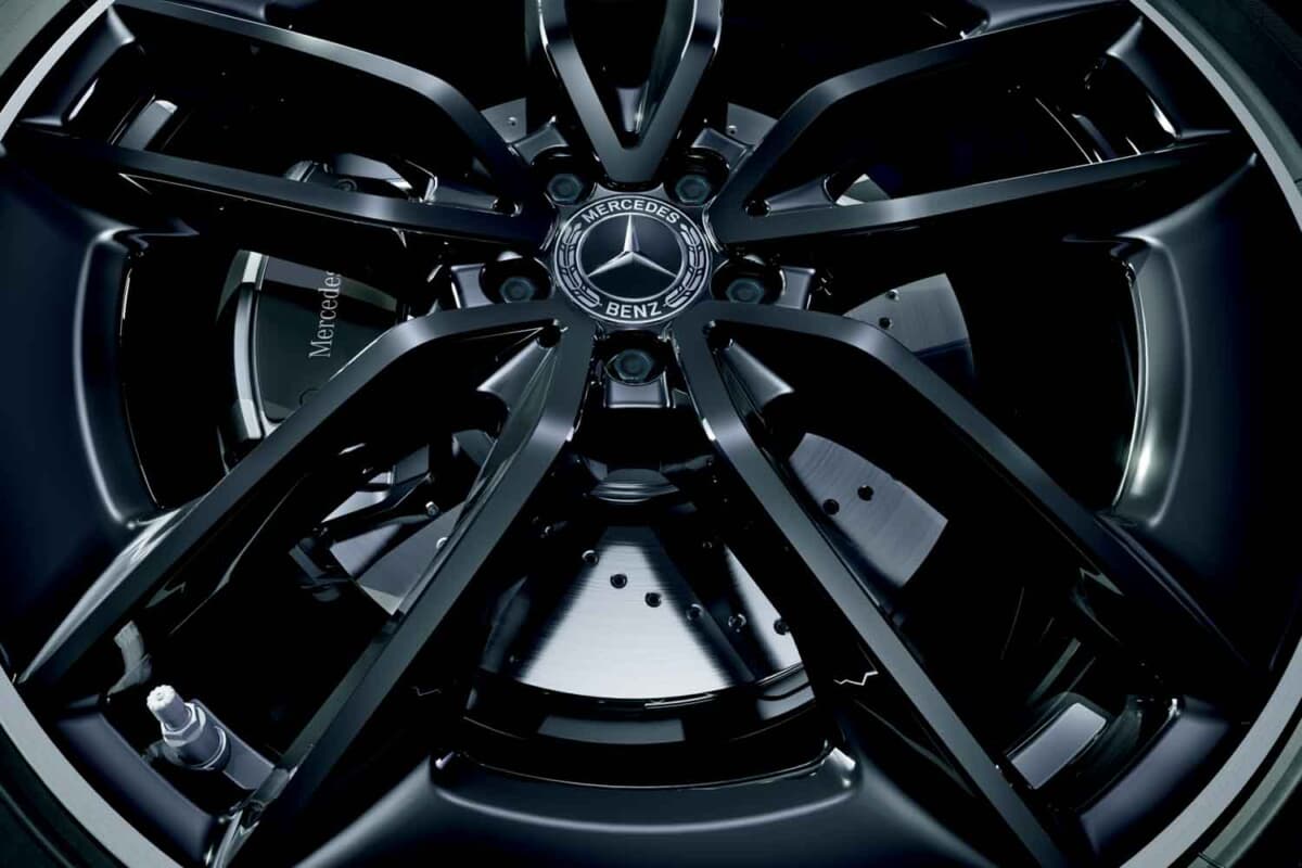 エクステリアではナイトパッケージを標準装備し、ドアミラーやフロントリップ、リアバンパーはブラック仕上げ。SUVモデルではルーフレールもブラックとなり、全体を引き締めた印象を与える。ドアハンドル上部にはダーククロームを採用し、細部にまで統一感を持たせ、足もとにはブラック基調の22インチAMGアルミホイールを装着し、存在感のあるスタイリングを実現。