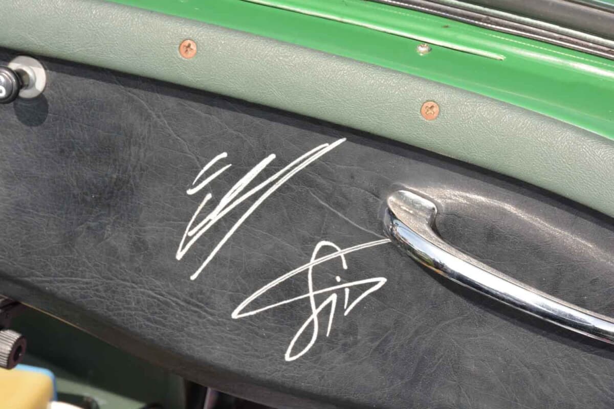 室内に目を転じると、ダッシュボードになにやらサインが書かれているのが見える。じつはこれ、ただの落書きではない。