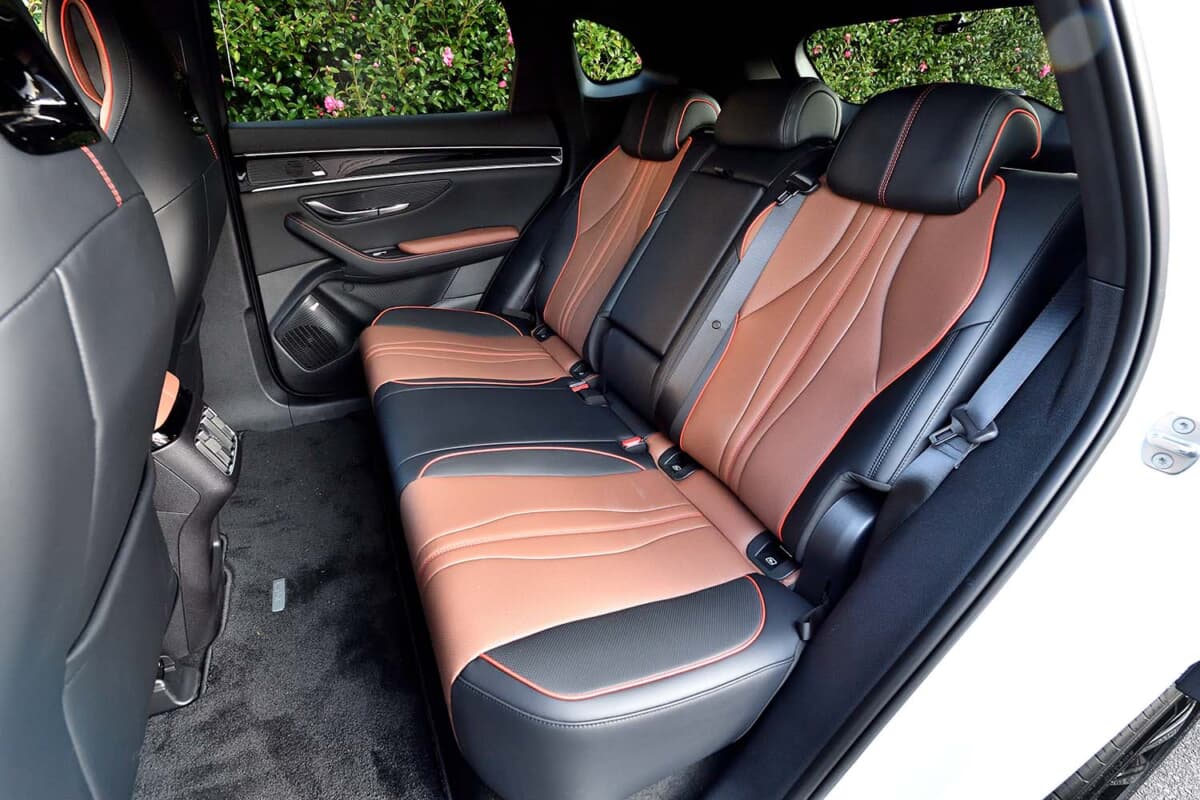 室内はブラックとタンよりは濃いブラウンの2トーン。ブラックのみはスポーティーだが華がなく、ブラウンのみだと汚れが……、と気になる部分がブラック、と言うわけではないが色一択仕様となれば、これで十分。目が行くのは中央に鎮座する15.6インチの大型モニター。あらゆる機能はここから設定する。広々とした空間はボディサイズに準ずる。