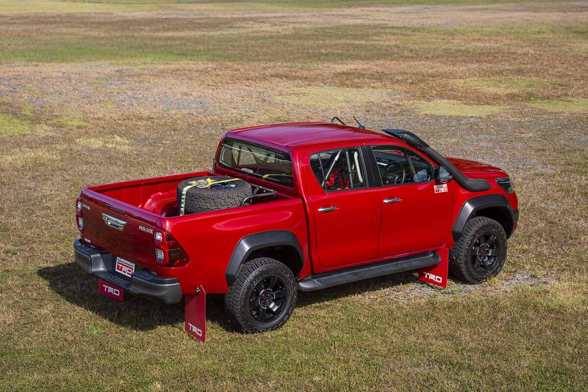 • TRD_HILUX:前後オーバーフェンダーや足まわりパーツで構成するスーパーワイドトレッドキットを装着