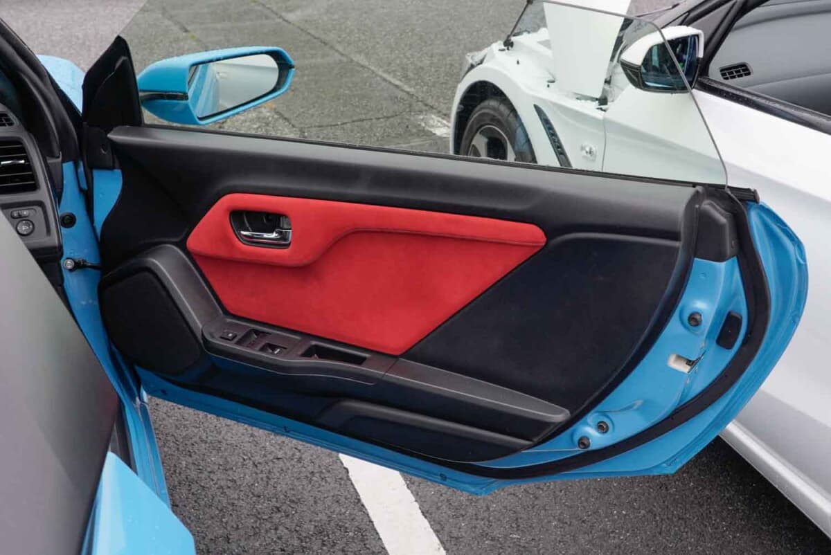 「最初はミツバチみたいに黄色と黒の仕様が可愛いかなと思って黄色を探したのですが、このブルーとホイール、そして当時オプションだった内装の赤の差し色が、私の好みで決めちゃいました」