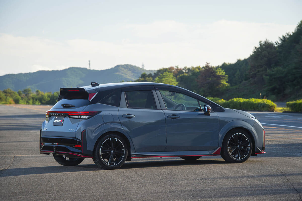 たとえばNISMOにすると、スポーティな強い加速とともにアクセルオフでの回生ブレーキも強く入る。余裕をもってブレーキをかけるポイントで、アクセルを全オフにすると、強めの回生ブレーキが効いて、ブレーキペダルの操作なしにハンドリングコースを走ることができる(直線からのヘアピン以外)。そしてコーナー立ち上がりではリア寄りの駆動感覚を見せながら気持ちよく旋回加速していく。
