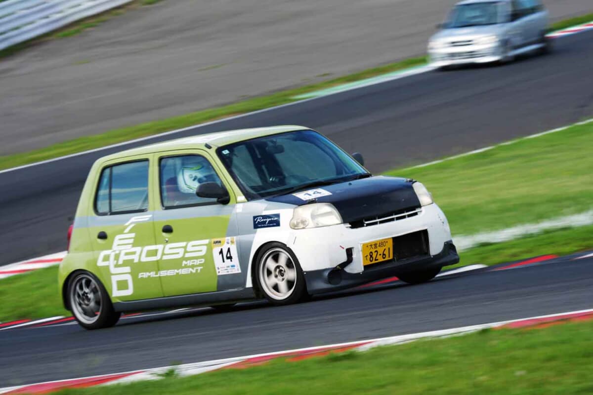 • エッセで3クラスに参戦する辻原さん。来シーズンはハイグリップタイヤを履ける2クラスへのステップアップを考えているそうだ