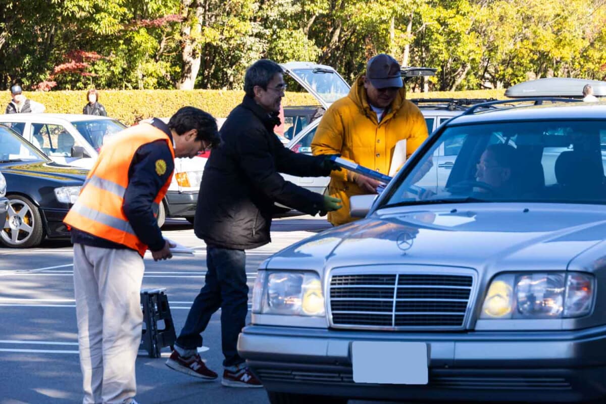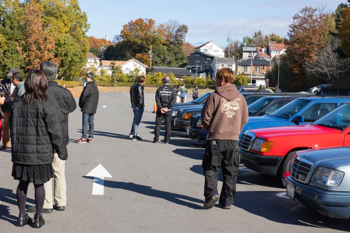 「W124 CLUB JAPAN」はそんな初代Eクラスを愛するオーナー同士の交流と、次世代へこのクルマを継承してもらう目的で活動する会員およそ540名を誇る全国規模のクラブだ。今回の全国オフ会は4回目で、トヨタ博物館での開催は3回目となる。そのためクラブのイベント運営もしっかりしていて、ボディカラー、ボディスタイルごとにテキパキと誘導していた。