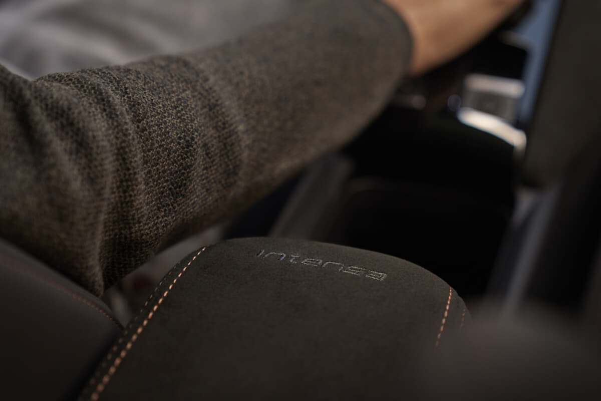 内装には、タンカラーをアクセントとしたアルカンターラ素材を随所に使用。アルカンターラ/エコレザーシートや、タンカラーステッチ入りのインテリア加飾、アルカンターラ/レザーステアリングを採用し、シートおよびセンターアームレストにはインテンサのロゴが刻まれる。素材と色使いによって、限定車ならではの上質感と特別感が強調されている。