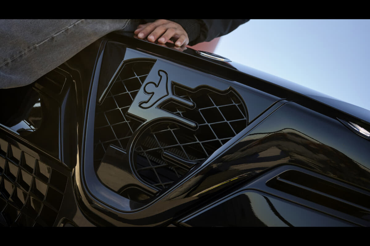 グロスブラックを基調とした外装は、随所にゴールドアクセントを配したインテンサ専用ボディキットを装備。フロントには、ビショーネ(蛇)をあしらったプログレッソ・デザインのスクデットをボディ同色で採用し、ボディラインとの一体感を高めて存在感を強調。足もとには、ゴールド仕上げの18インチのペタリアルミホイールを装着する。