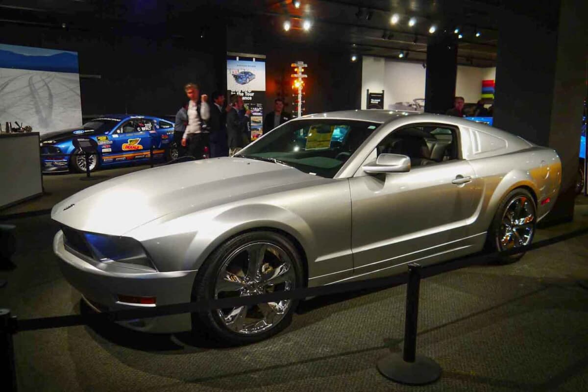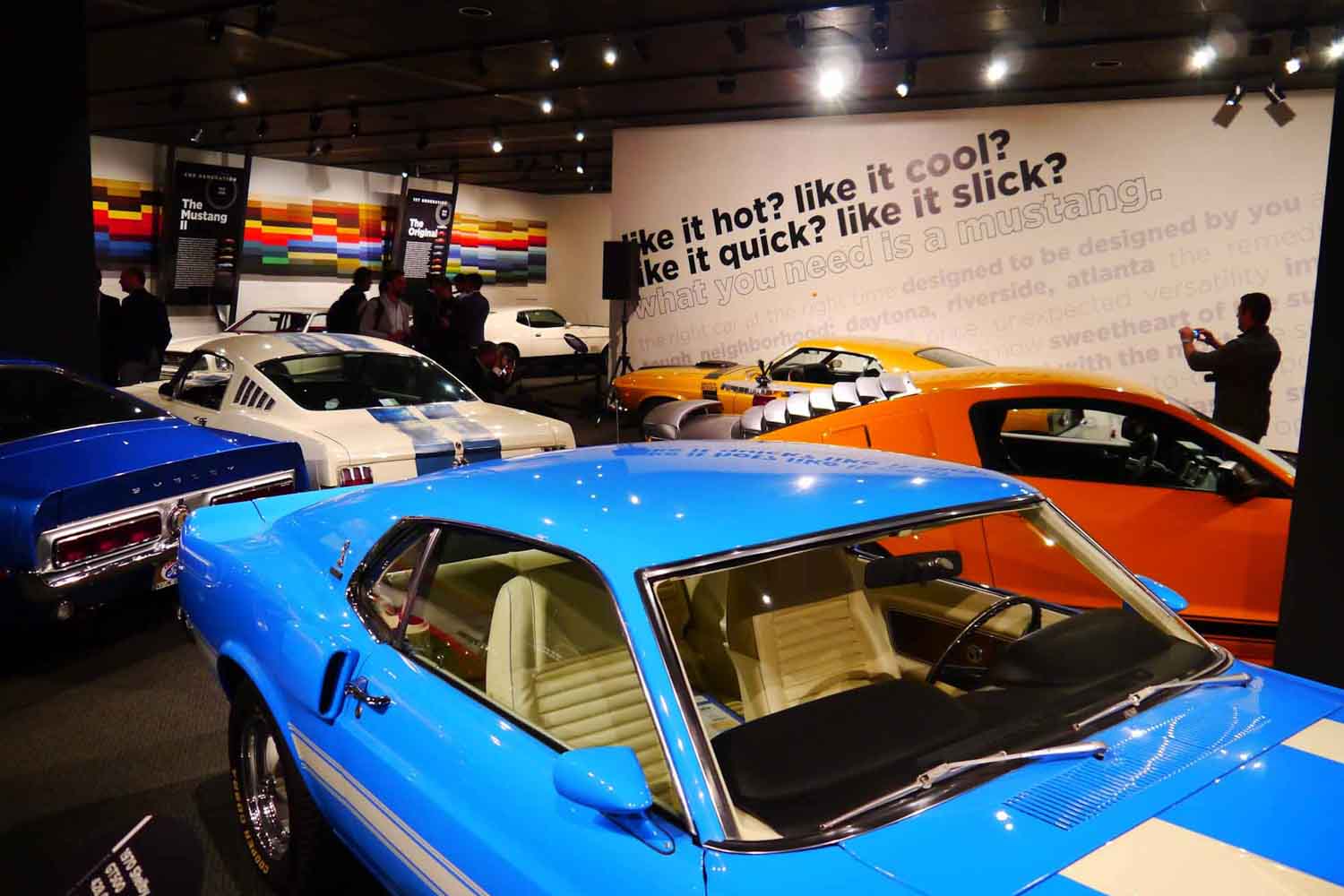 ここは2度訪れた。最初がいつだったかは記憶にないが、2度目は6代目のフォード「マスタング」が誕生した2014年である。発表は2013年のことで、2014年に試乗会が行われた。その時、フォードはピーターセンミュージアムに歴代のマスタングを並べて、アメリカにおける発表会を催したのだ。常設の展示とは別に、おびただしい数のマスタングが並べられ、なかには見たことがなかったモデルも並べられていた。