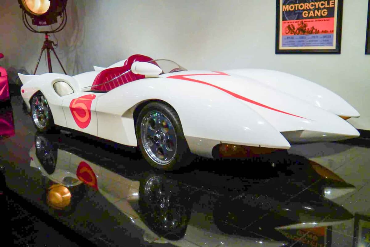 もう1台ユニークなモデルが展示されている。それは日本のアニメ「マッハGoGoGo」に登場したマッハ号だ。単なるモックアップではなく、シボレー「コルベットC4」をベースに作られた実動車である。コルベット用の5.7L V8エンジンはドライバー背後に搭載されているそうで、ミッドシップに改造されているから、シャシーの方も大改造、もしくは特別に作られたものだろう。もちろんワンオフのクルマだ。