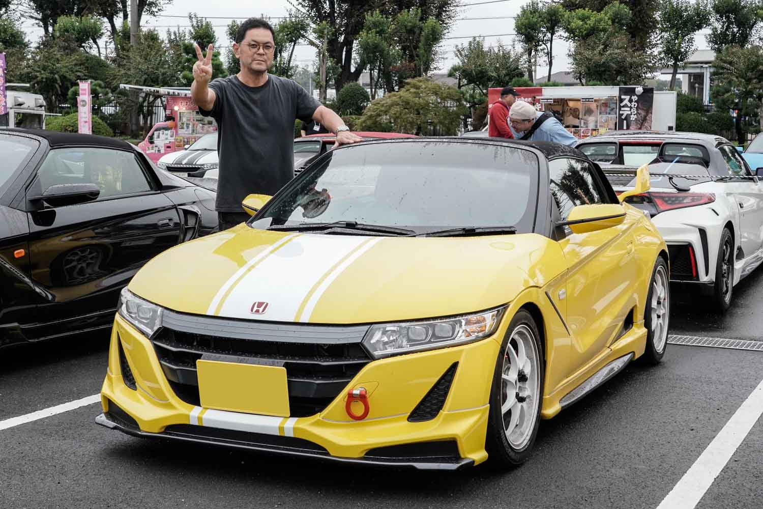 • ホンダ S660:センターストライプが入ったカーニバルイエローのレーシーなエスロクで、峠道からミニサーキットまで楽しんでいるという源さん