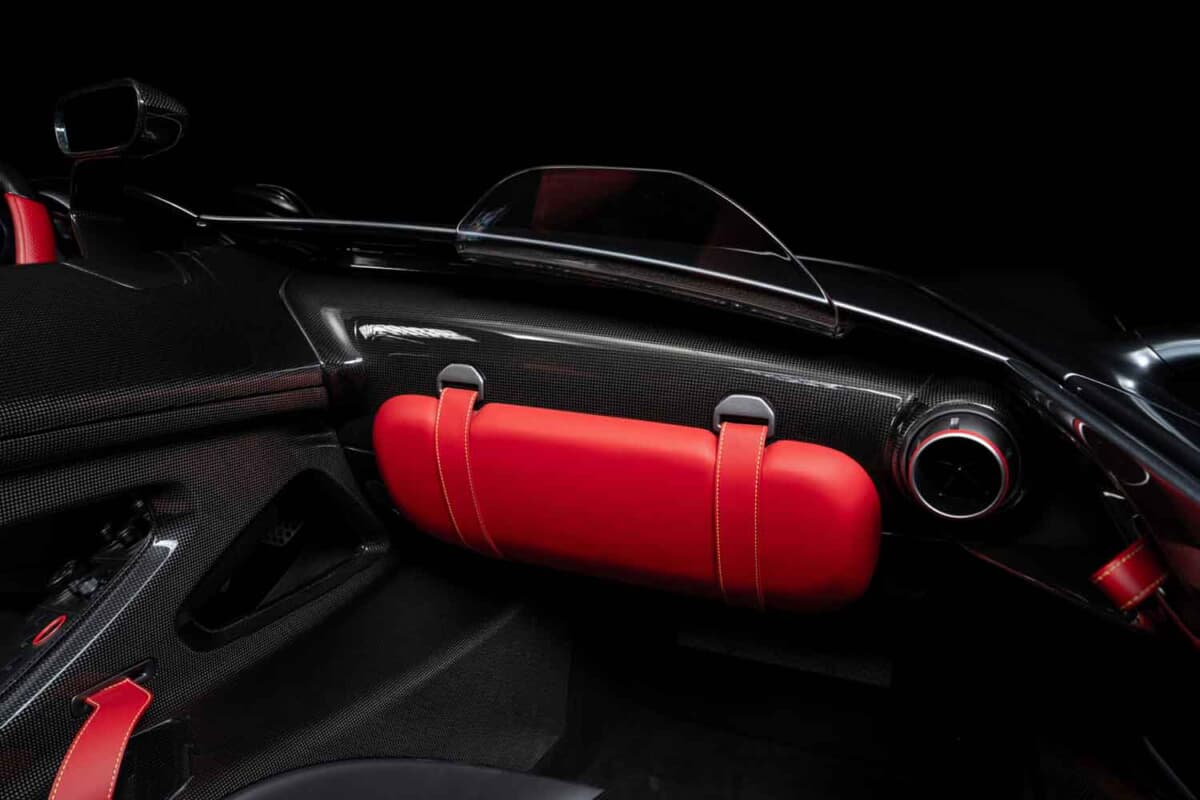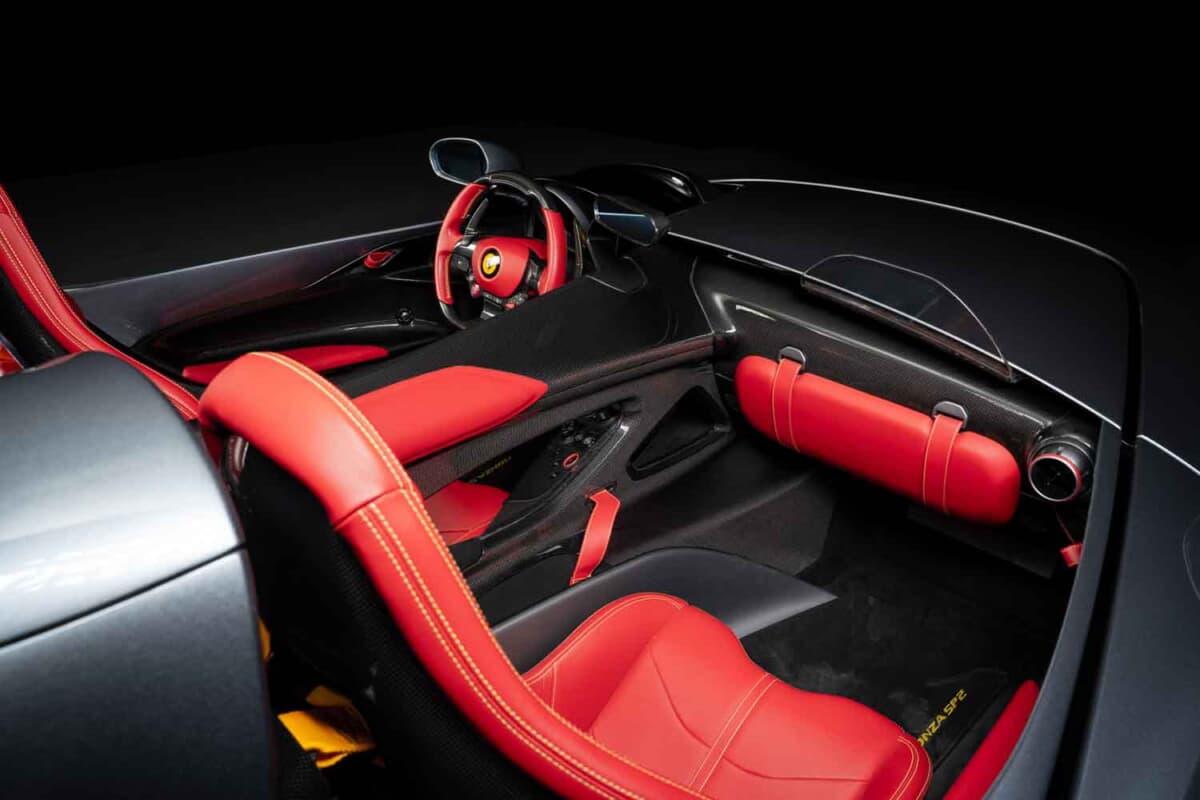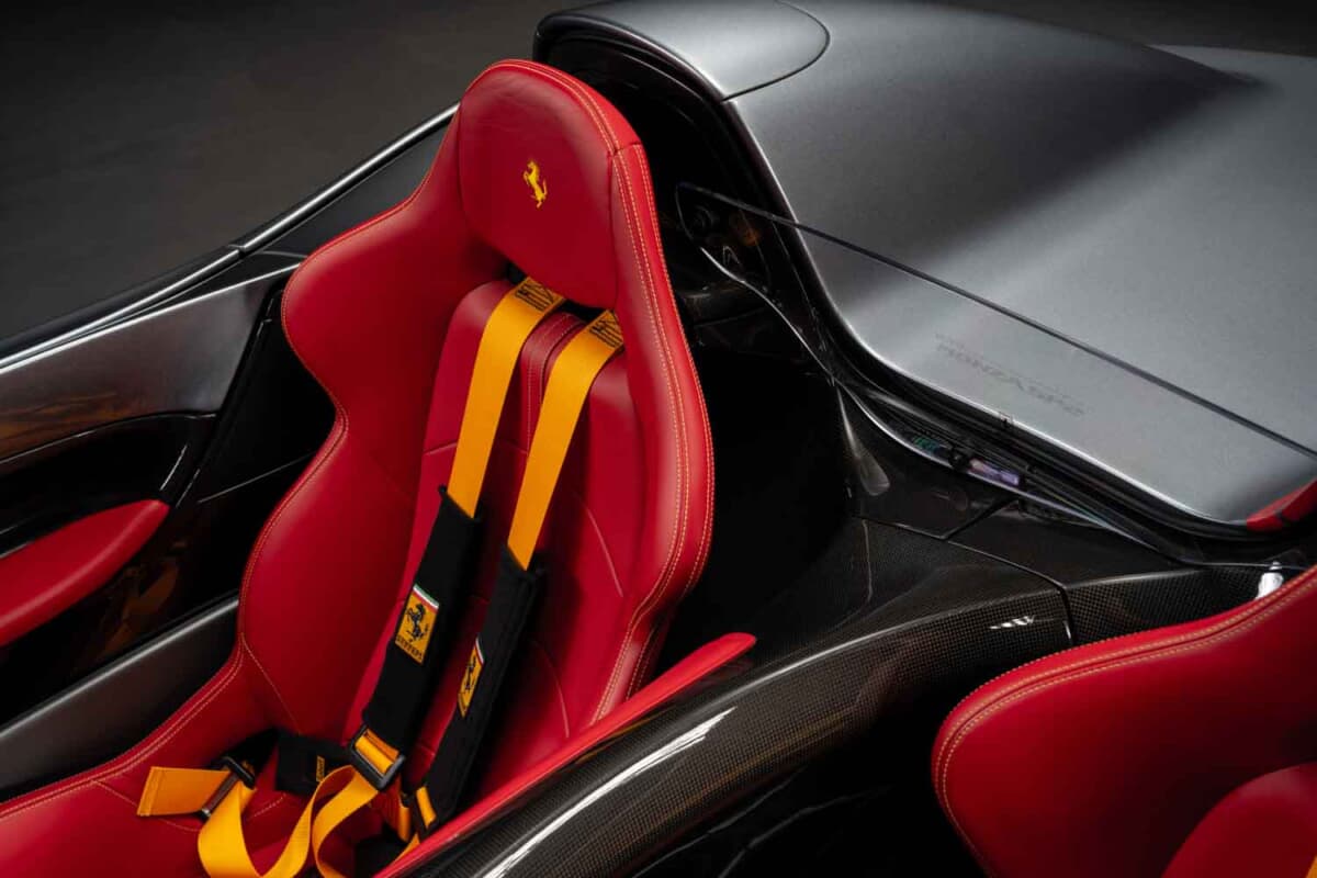 参考までに当時フェラーリから発表されたドライウェイトは、SP1が1500kg、SP2は1520kgという数字。このボディに包み込まれるメカニズムは当時の12気筒ベルリネッタ(クーペ)、812スーパーファストのそれがベースとなっており、フロントに搭載される6496ccのV型12気筒エンジンは、さらに10psが強化され、810psの最高出力を誇った。これに7速ミッションを組み合わせ、0→100km/h加速では2.9秒、0→200km/h加速は7.9秒、そして300km/h以上の最高速を実現するというのがフェラーリからの発表値だった。