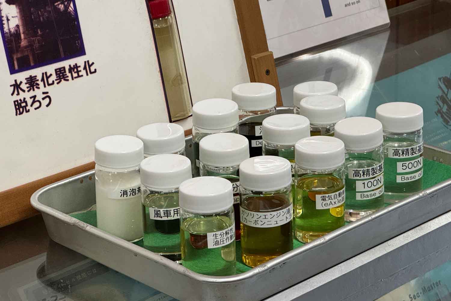 研究所では、このオイルに使用されている材料などを見せていただきました。中身については門外不出の機密情報が含まれるため、写真掲載はNGでした。ただ、材料の研究者に女性が多いのが驚きでした。