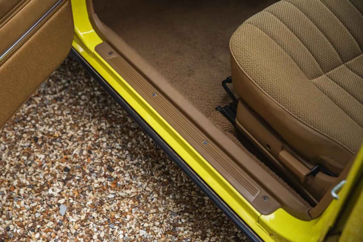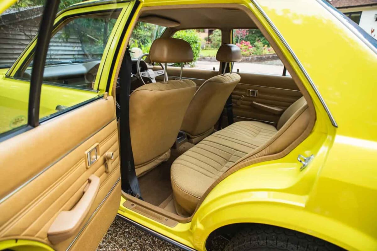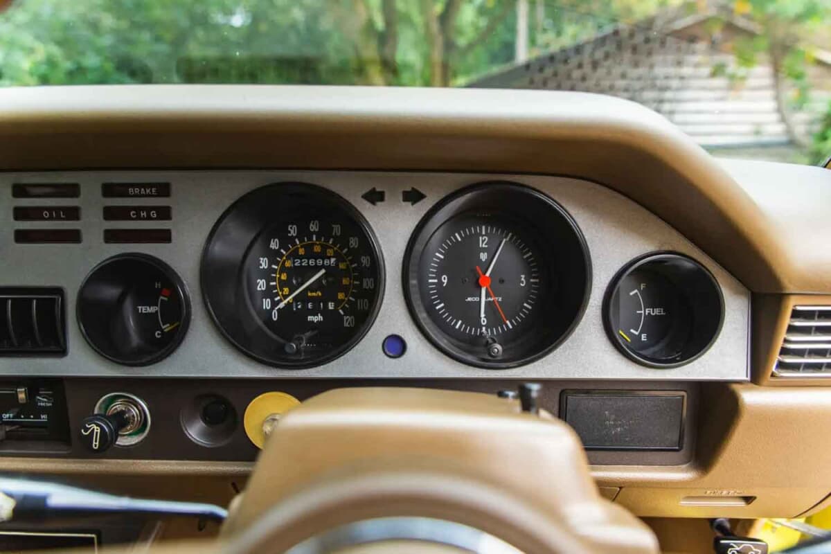 今回のオークションに登場したのは1977年にフルモデルチェンジされた2代目モデルだ。初代のイメージを色濃く受け継ぐ丸形4灯ヘッドライトは前期型のみの特徴。後期型は角型4灯ヘッドライトに改められ、全長を伸ばしたスラントノーズスタイルへと刷新されるなど印象を大きく変えている。