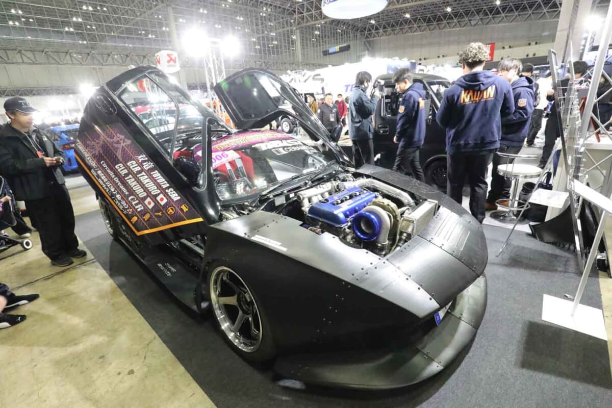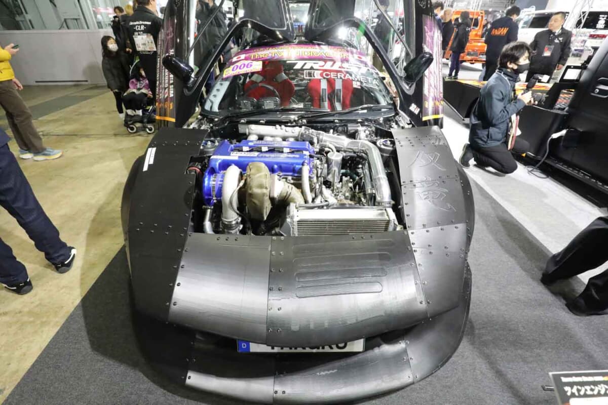 ボディの選定からシステムの構築まで、すべて自ら設計・製作した渡辺代表。ベース車にセラを選んだ理由は、深い意味があるかと思いきや「ドアが上に開いてカッコ良いから」というシンプルなものだ。そして、双竜・第2形態のエンジンは、フロントにニッサン・SR20VET(SR20VEヘッド仕様のターボ)、リアにホンダ・K20Aボルトオンターボを横置きで組み合わせている。トヨタのボディにニッサンとホンダのエンジンを搭載するという、国内メーカー3社を融合させた構成もユニークだ。