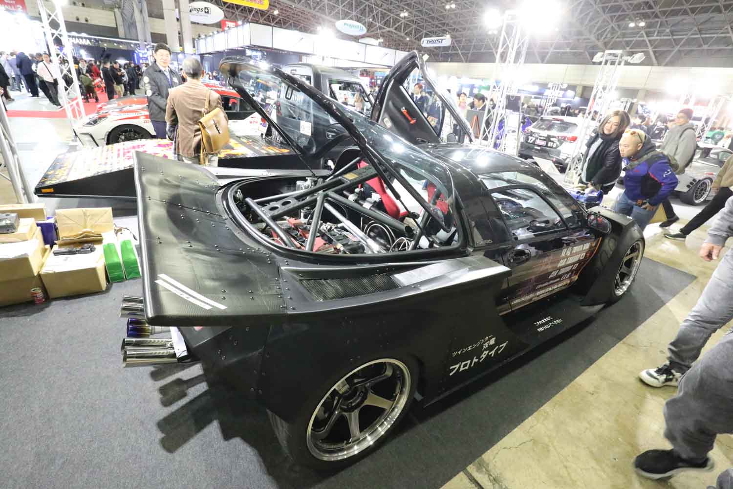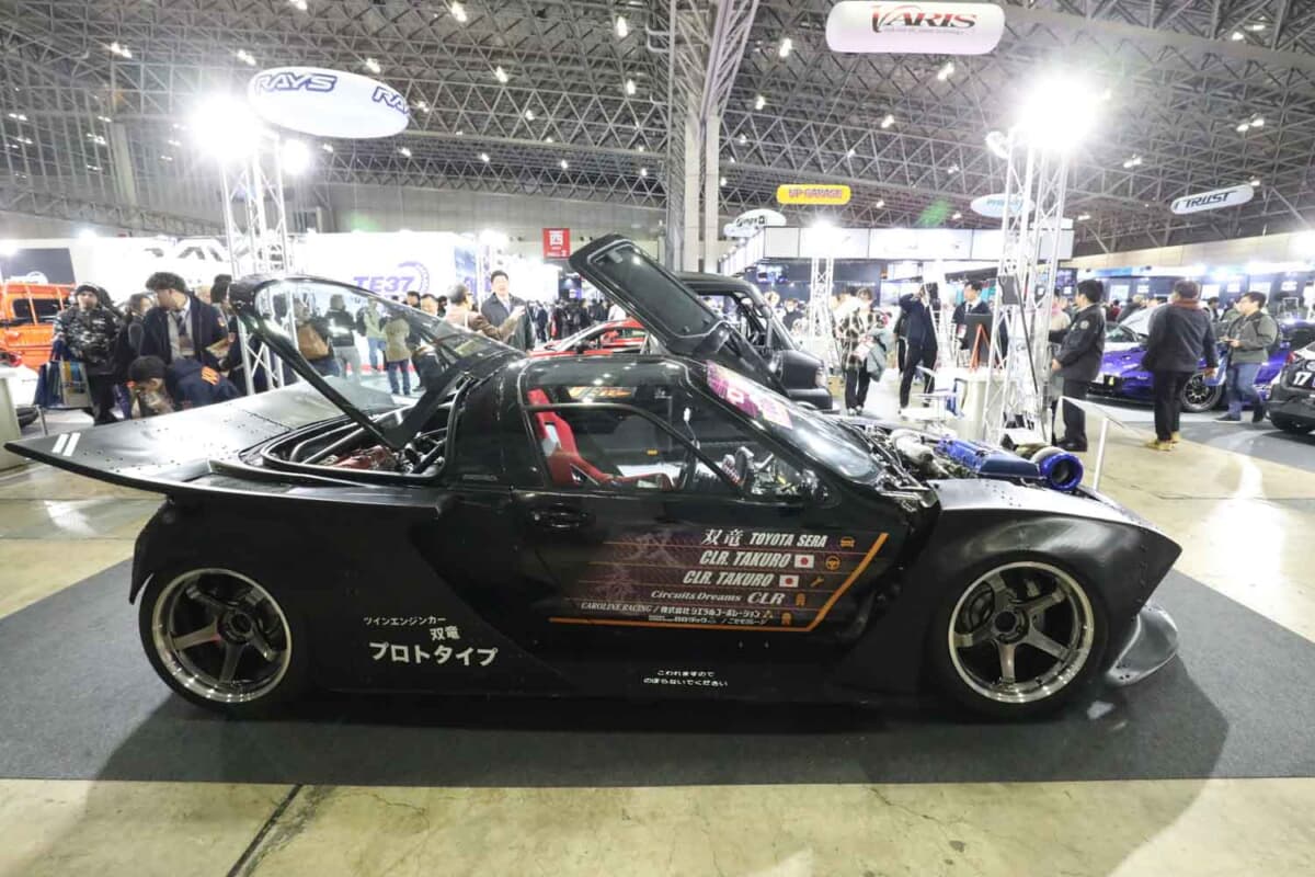 トヨタ セラをベースに、1000psオーバーのツインエンジンを搭載したモンスターマシンを発見した。その名は「双竜・第2形態」。じつは2025年の東京オートサロンにも登場しているが、当時はセラのコクピットのみを残して前後にパイプフレームを組みツインエンジン化させた仕様だった。今年は専用ボディを製作しフルカウル化させたため、「第2形態」として披露された。