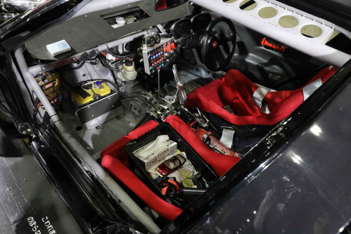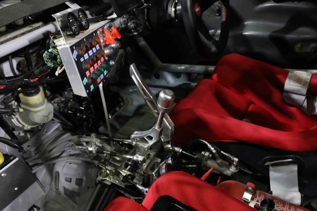 • トヨタ セラ:ペダルとシフトノブは専用リンケージで1本化。Defi(デフィ)製ディスプレイは前後エンジン用に2個並ぶ