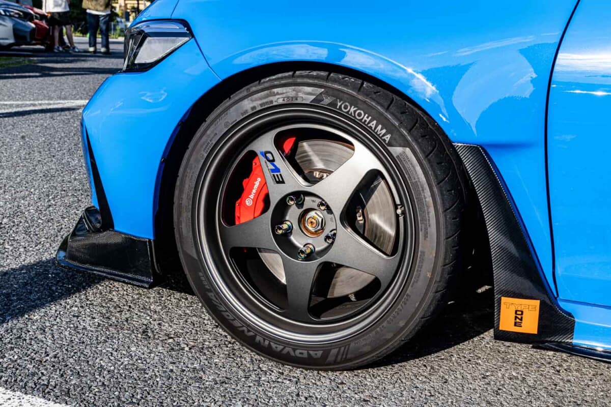 「スプーンさんで揃えたかったので、ぱっと見はそれっぽい仕様ですけど、ちょこちょこ違うんです。ホイールがSW388(スプーン製)ではなくてリーガマスターにしてあるとか。すべてがスプーンには染まらない感じにしています。マフラーは意外とHKSさんがリリースしていて、元気な音がしたので選んでいます。足に関しては、ノーマルショックの評判が結構いいので、ダウンサスにして、街乗りプラスちょこっとサーキットぐらいだったら、全然十分に行けます。今はこれで十分なんですけど、足がヘタってきたら車高調を入れたいですね。KWさんとかA PITさんのゲートスペックも考えているんですけど、作っているところがたくさんあるので、出揃ってから最後に決めればいいかと思っています。あとはブレーキも、今はスプーンなんですけど、ローターがだめになったりしたら、他の物もいろいろ試して好きなやつを選んでみたいと思っています」