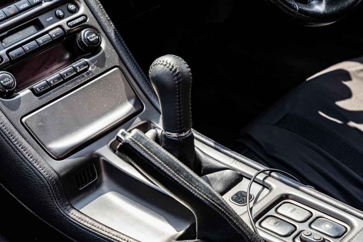 子供の頃から持っていたミニカーと同じリトラクタブルライトの前期型NSXを手に入れた新山さん。価格を優先してATモデルを選んだそうだが、クルマを拝見すると、MTのシフトノブが備わっている。