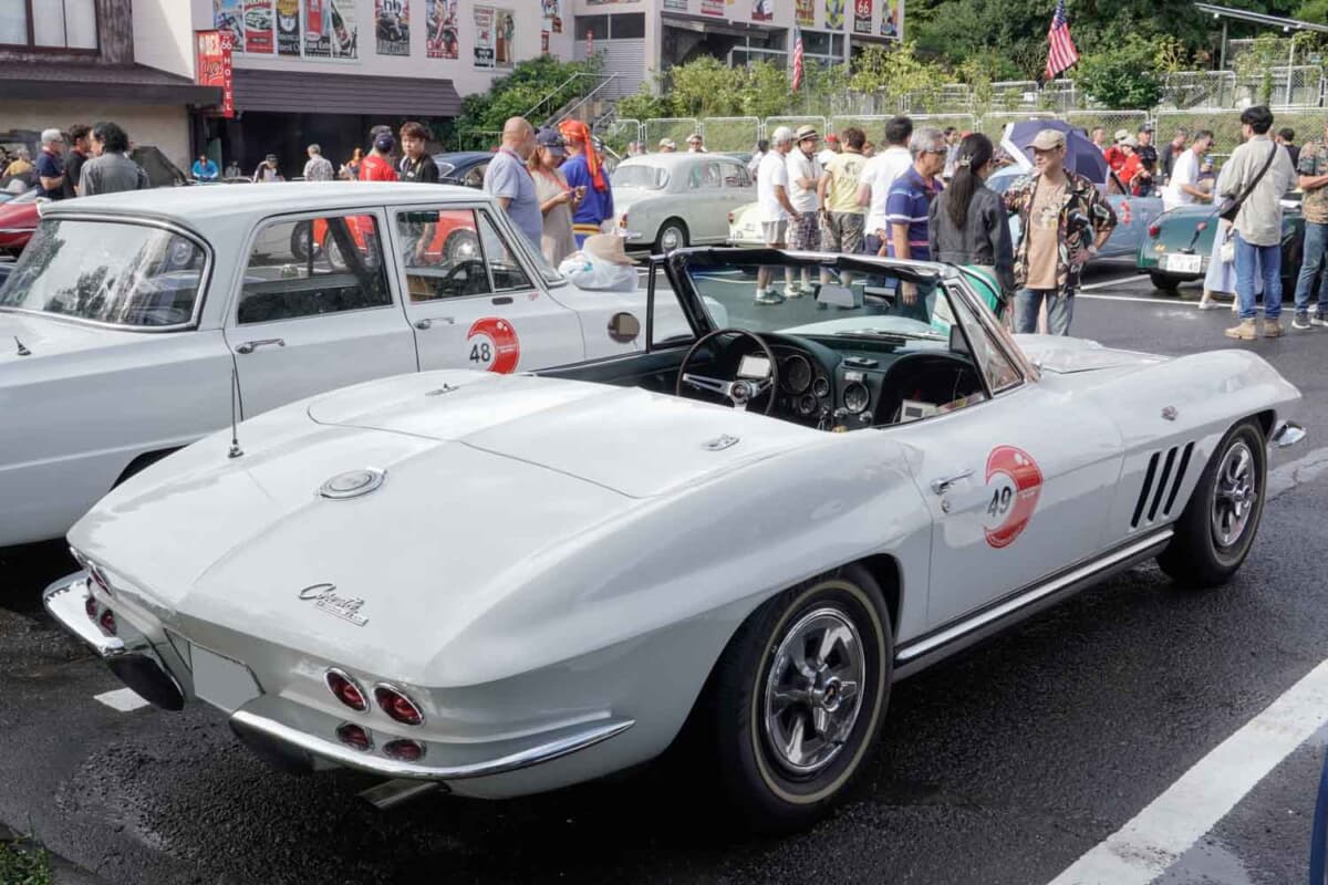 欧州車での参加が多いなか、スタートおよびゴール地点となる「伊香保アメリカンビレッジ」の雰囲気にぴったりの参加車両が目に留まった。軽量ボディに高性能V8エンジンを搭載した、アメリカンモータースポーツの象徴であるシボレーC2型コルベットのコンバーチブルだ。登場から半世紀を経た現在でも世界のレースシーンで活躍し続ける血脈は、脈々と受け継がれている。