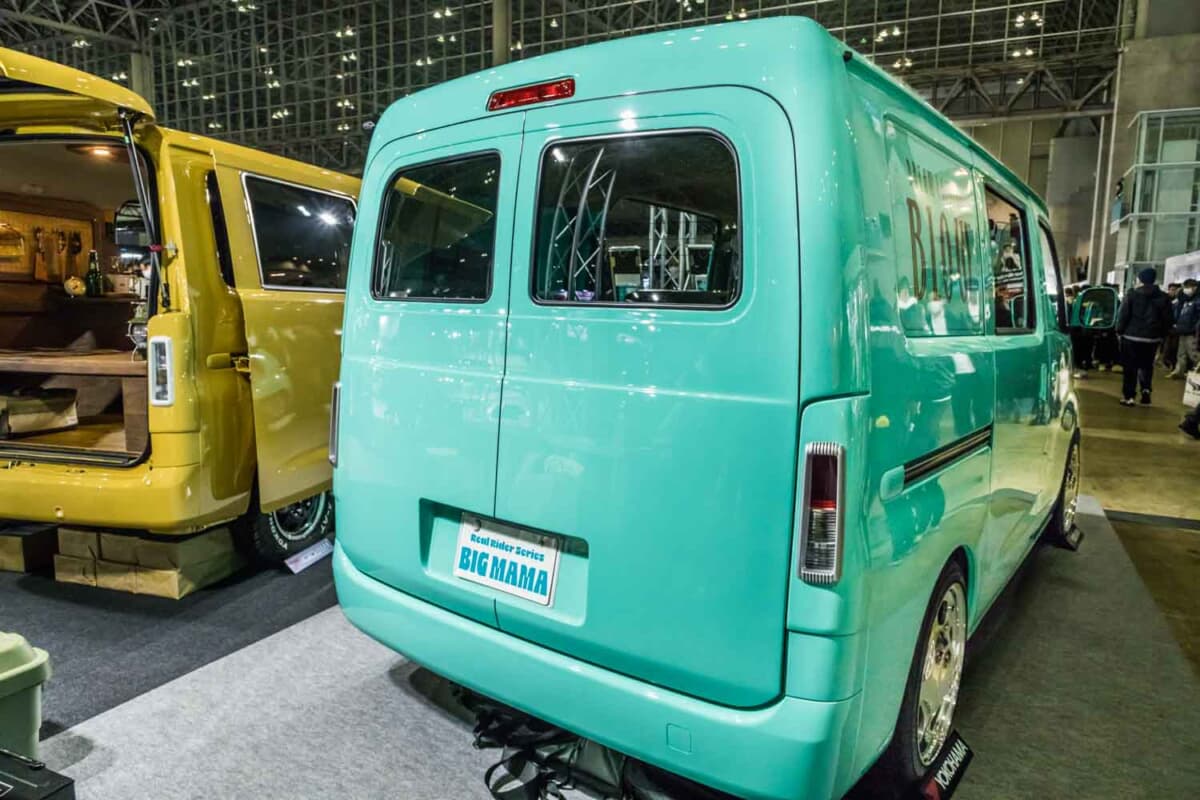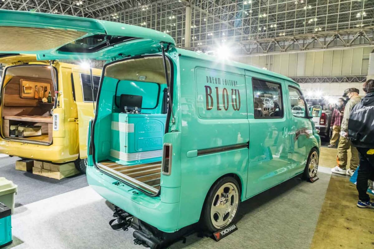 オートサロン会場で、ミニバンをベースに古いアメリカ車の雰囲気をオマージュしたカスタム車両を発見。制作したのは、神奈川県相模原市で軽バンのカスタムでポピュラーなBLOW(ブロー)。ところが今回出展しているのは軽自動車がベースではなく、ひとまわり大きい小型商用車をベースにしたカスタムなのだ。