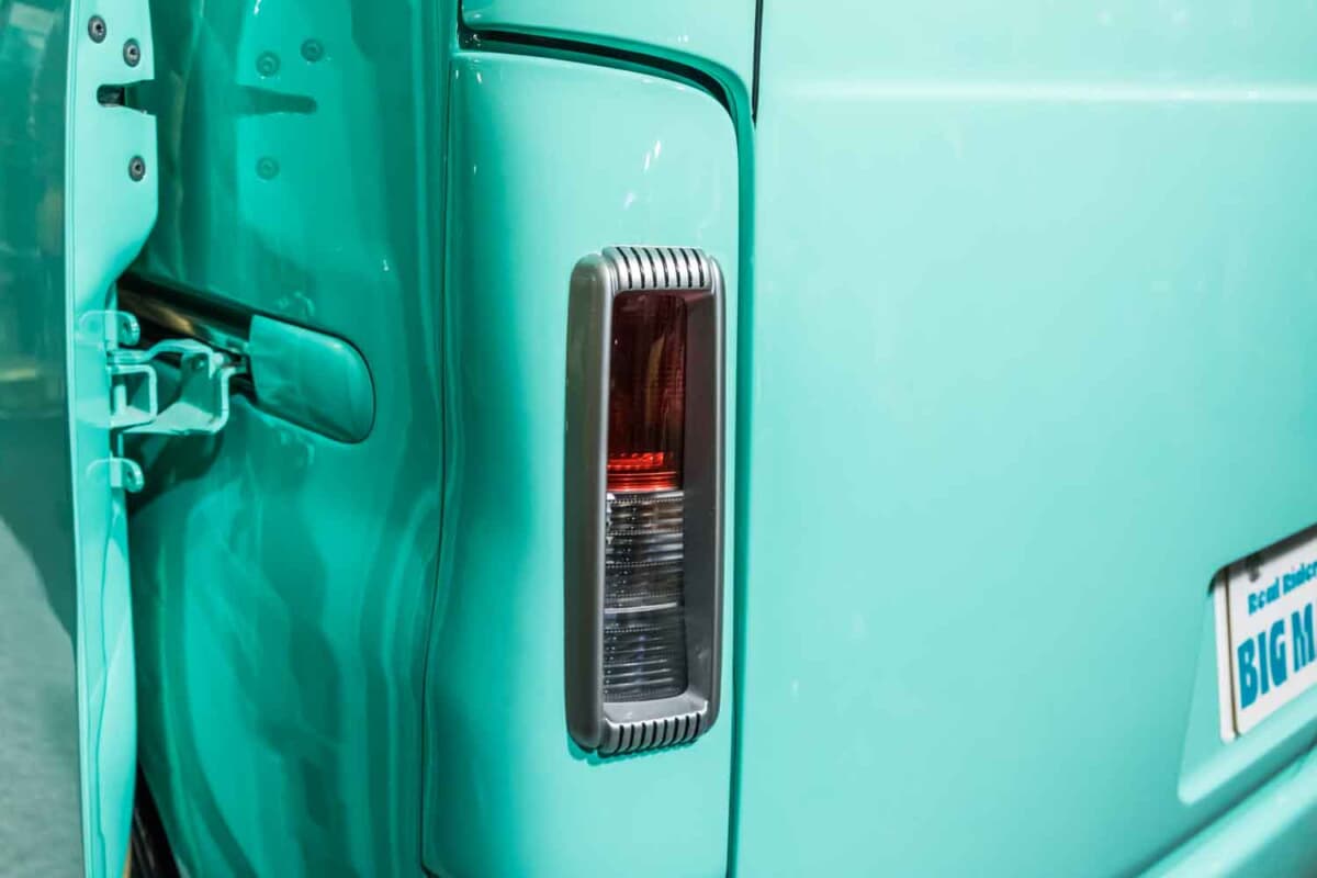 さてフロント以外も見ていこう。側面は一番後ろの窓がパネル化されており、よりデリバリーカー的な雰囲気となっているほか、パネル部分にロゴを入れることでショップのコマーシャルカーの雰囲気が一段と高まる。面白いのはリアで、タウンエースは上ヒンジの跳ね上げ式リアゲートとなるのだが、センターピラーが備わる左右セパレートの窓としたうえで、まるで観音開きのように見えるラインは、なんとペイントによるものなんだとか。これぞカスタムに長ける「BLOWならではのアイデア」と言える。