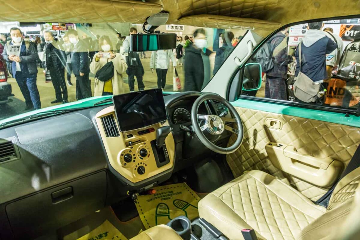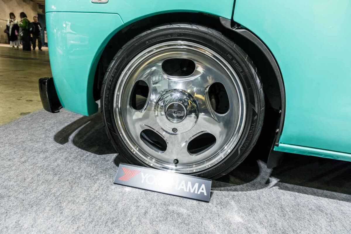横格子の大きなラジエターグリルバーや、ずんぐりした丸みのあるボンネットとその前端のスリット、グリル上に装着されるウインカーなど、フロント周り各部は見事に1940年代のCOEトラックを再現している。ちなみにボディはペパーミントグリーンでペイントされ、バンパーはブラックでペイントされているほか、オリジナルサスでローダウンしたうえで、懐かしい17インチのBOYDSホイールを装着している。