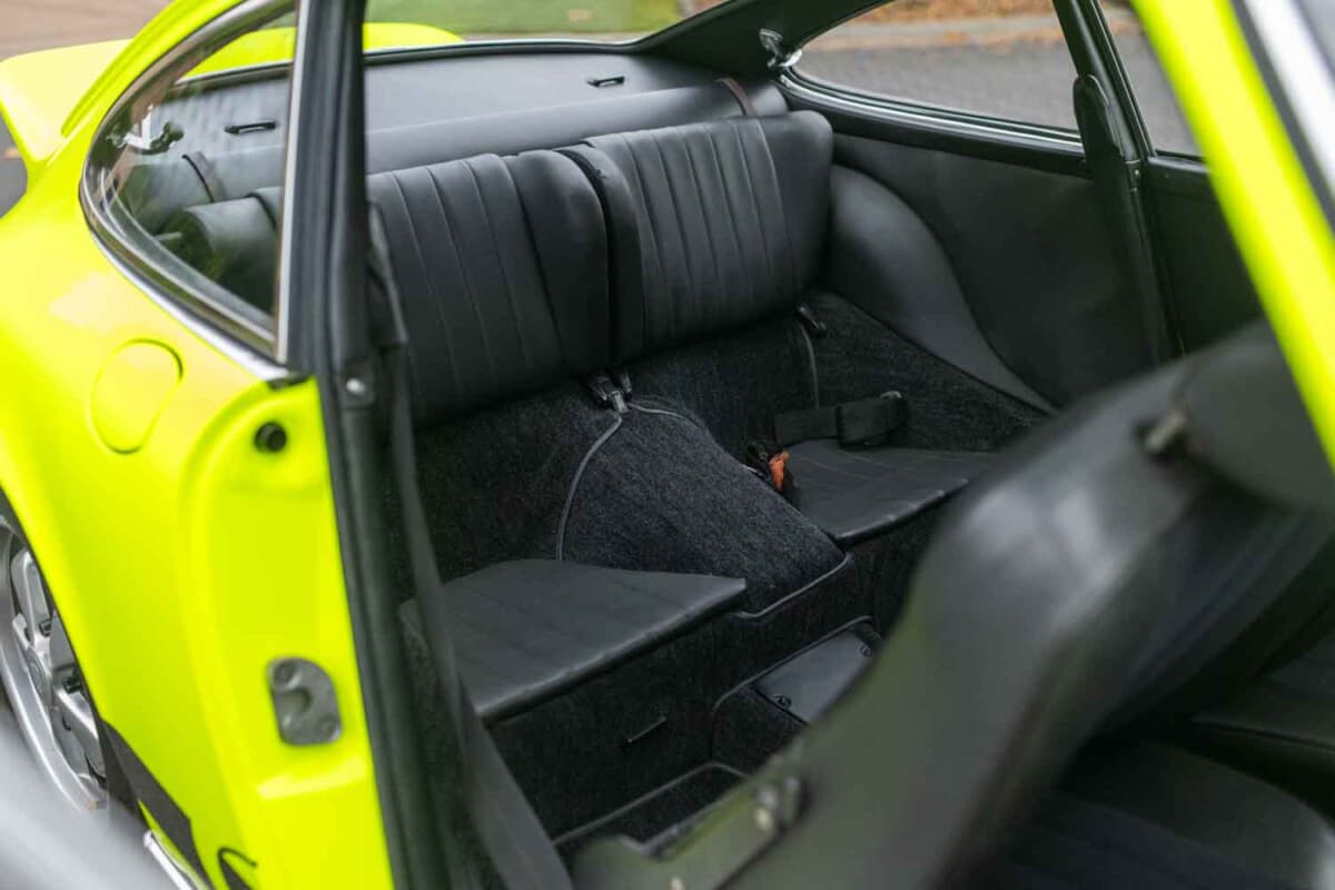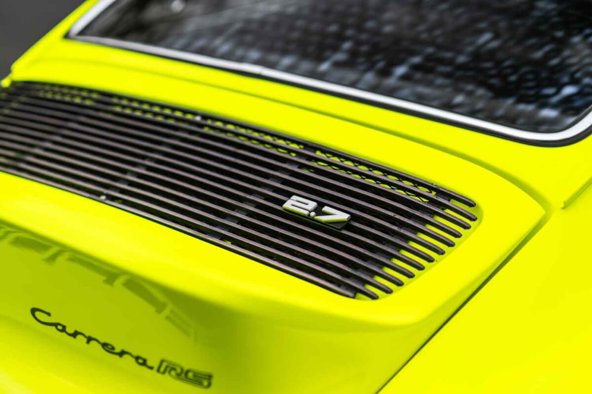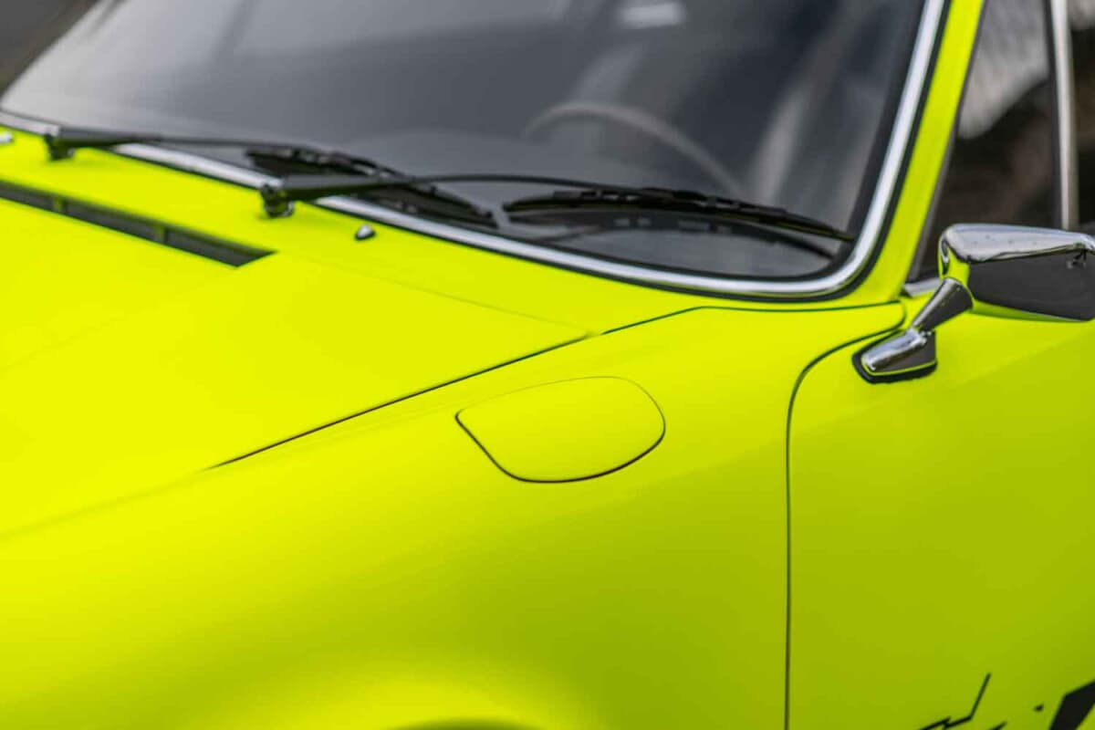 鮮やかなカラーリングのこのEシリーズ911クーペ(シャーシNo.9112301609)は、ヴァイザッハのポルシェ本社開発部門で使用され、「RS」名が制定される直前に試作されたもの。このため、この車両は「911S-2.7」モデルの初期計画に対応する存在であり、911カレラRS開発において極めて重要でありながら見過ごされがちな時代を体現している。