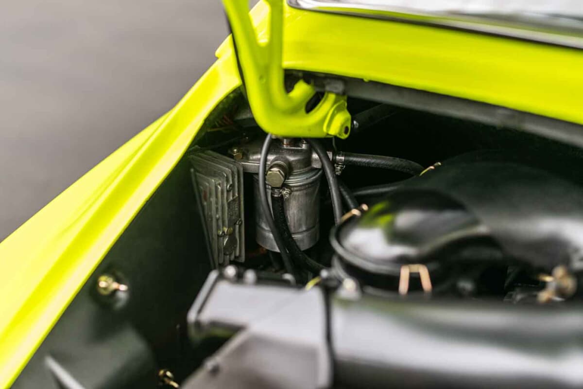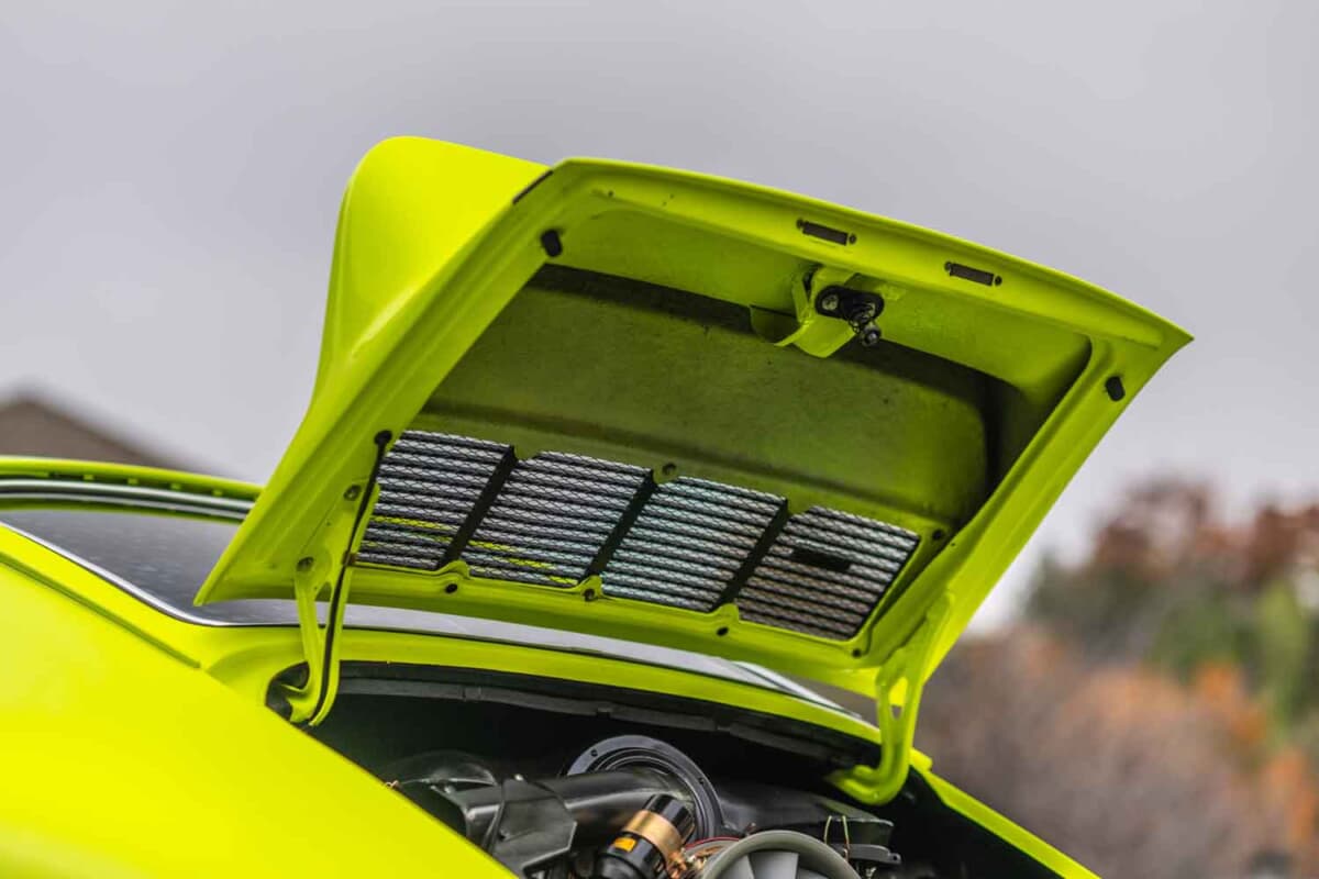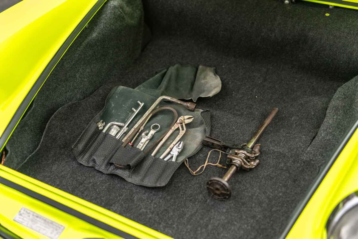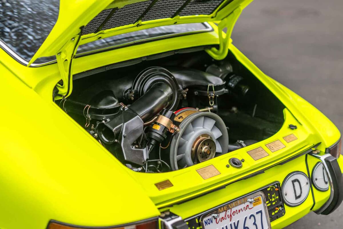 鮮やかなカラーリングのこのEシリーズ911クーペ(シャーシNo.9112301609)は、ヴァイザッハのポルシェ本社開発部門で使用され、「RS」名が制定される直前に試作されたもの。このため、この車両は「911S-2.7」モデルの初期計画に対応する存在であり、911カレラRS開発において極めて重要でありながら見過ごされがちな時代を体現している。