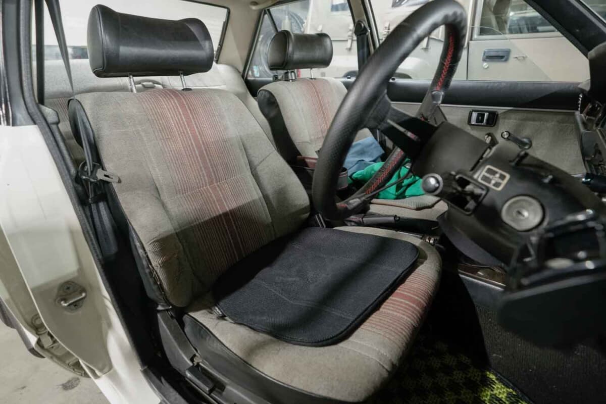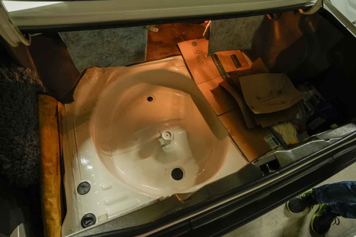 当初は屋根の下に置かれていたが、荷物の整理などで年々少しずつ移動させられ、最終的にはトランクから車体後部が雨に晒される状態になっていた。いざ復活させようとしたときには、タイヤはサイドウォールまで裂け、ブレーキキャリパー、ローター、ハブもサビだらけの状態であった。