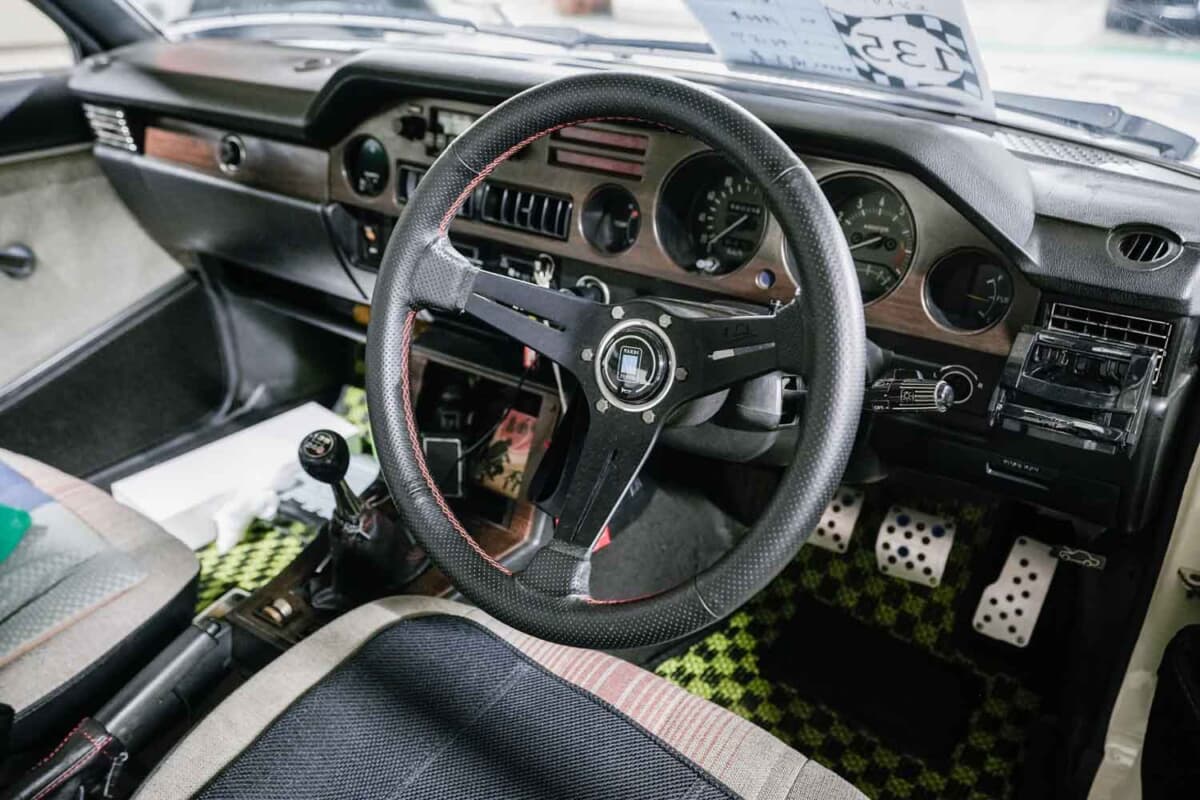 2024年に続いて2回目の参加というオーナー“アマンド7”さんの個体も、まさにその2000GTである。リアウインドウに誇らしげに貼られた「DOHC」のステッカーが、その素性を物語っている。
