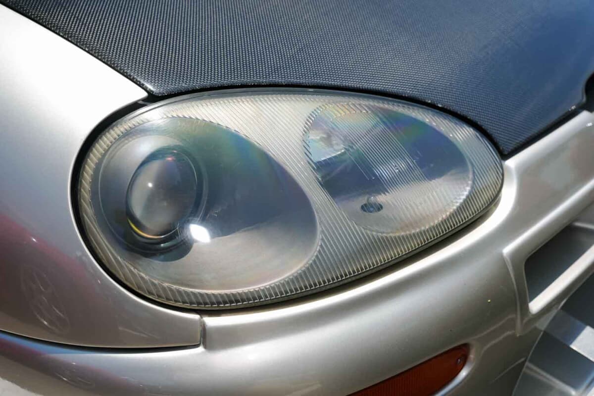 • スズキ カプチーノ:研磨して曇りを取ったヘッドライト。純正の新品はとっくに絶版となっており、程度のいい中古品は片側で5万円を超えるケースもある