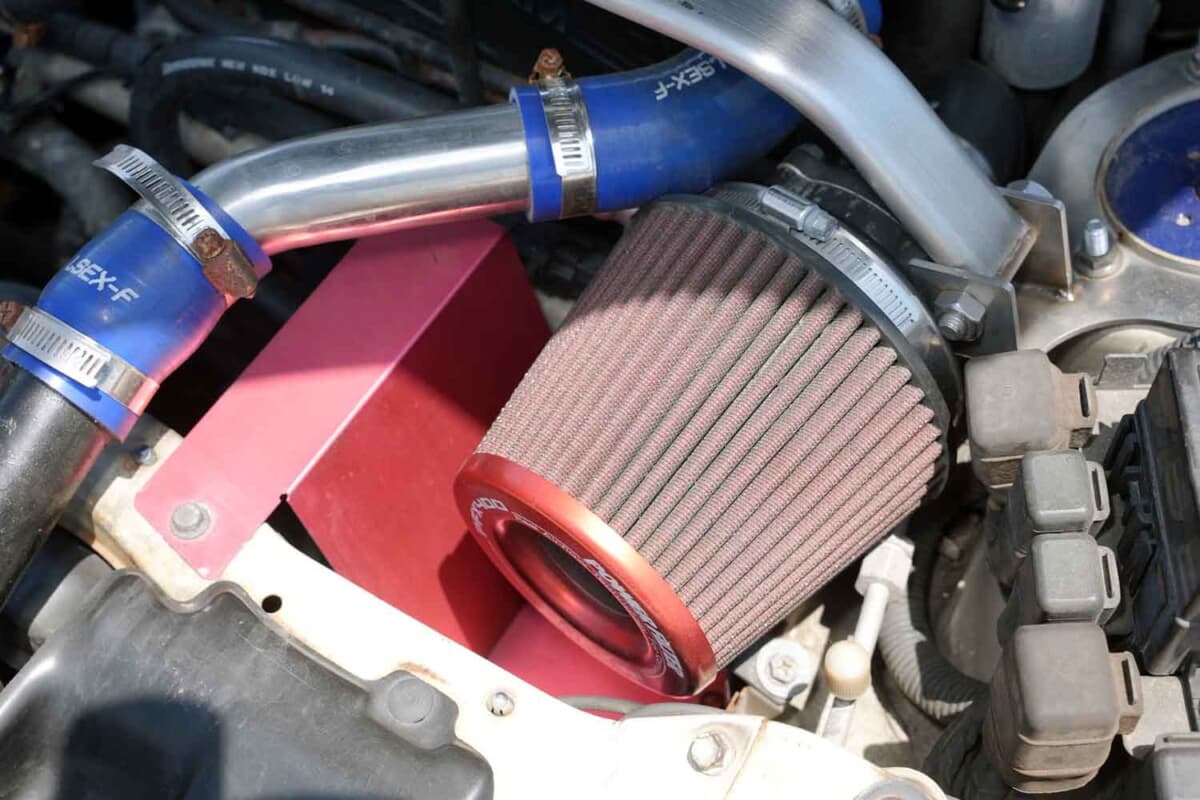 • スズキ カプチーノ:エアクリーナーはモンスタースポーツの剥き出しタイプ。インタークーラーのパイピングはトラブルの予防を兼ねステンレス製に交換