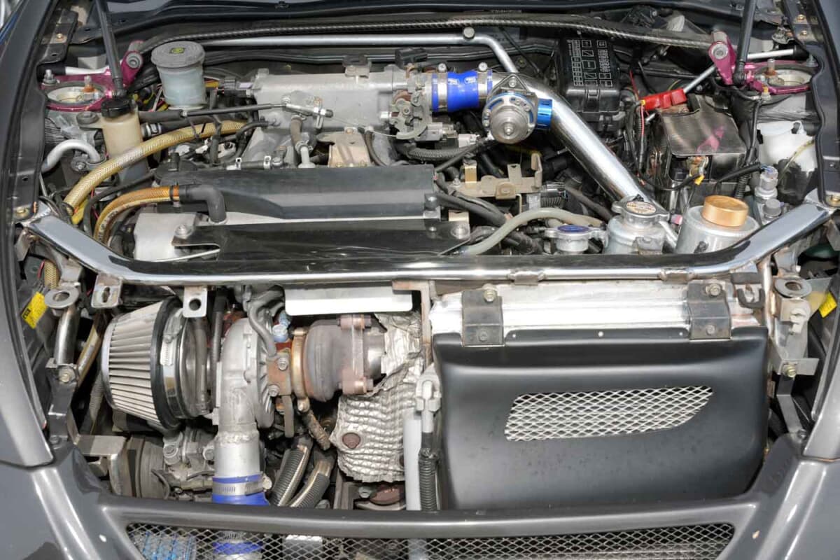 ダクトが開いたボンネットやダウンフォースが効きそうなフロントのスポイラー類、そしてピラー部分にガッチリと溶接されボディ剛性と安全性を高めるロールケージ、HKSのフルコン「FコンVプロ」で緻密にセッティングが施されたエンジンなど、下手にイジってバランスが崩れてしまうのがイヤなのも十分すぎるほど理解できる。