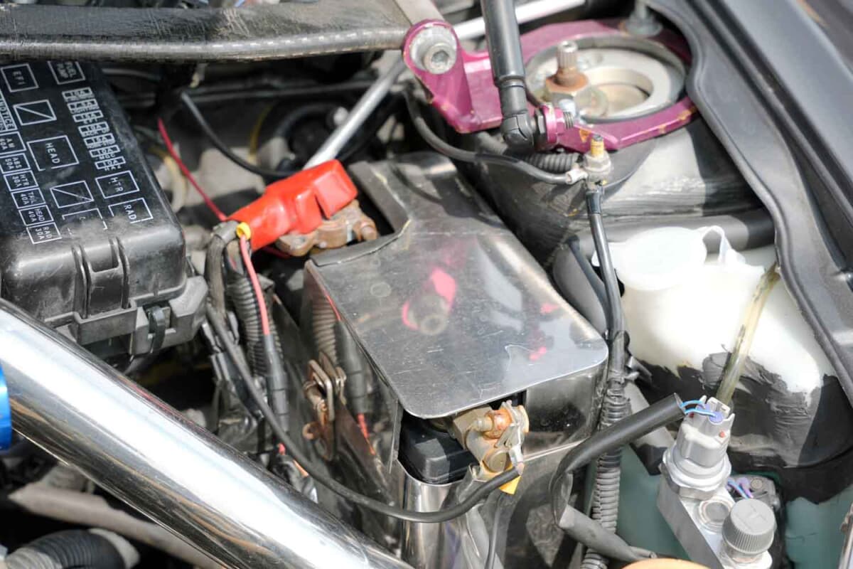 • ダイハツ コペン:大幅なパワーアップに伴いエンジンの発熱量も上がるため、バッテリーはアルミの板でしっかり隔壁されている。見た目もオシャレだ