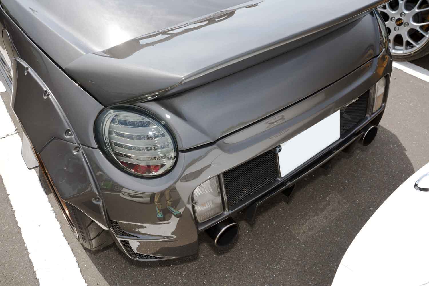 • ダイハツ コペン:前後オーバーフェンダーを装着しグラマラスなシルエットに。排気量アップだけじゃなく、ボディ幅でも普通車と同じ白ナンバーになる