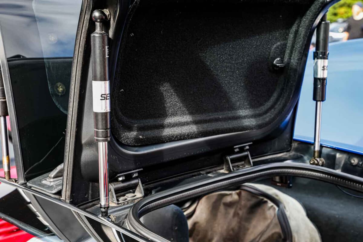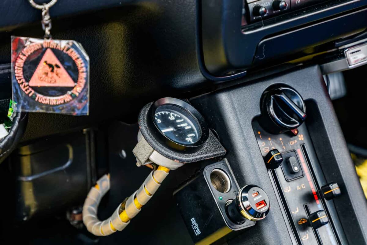 そういったわけで、ショックアブソーバーなどは社外品を使用。リアフード、エアクリーナー、ステアリングの変更、追加メーターの装着などといったカスタムも加えられている。ちなみにリアフードは、前のオーナーが追加したワンオフパーツとなっている。