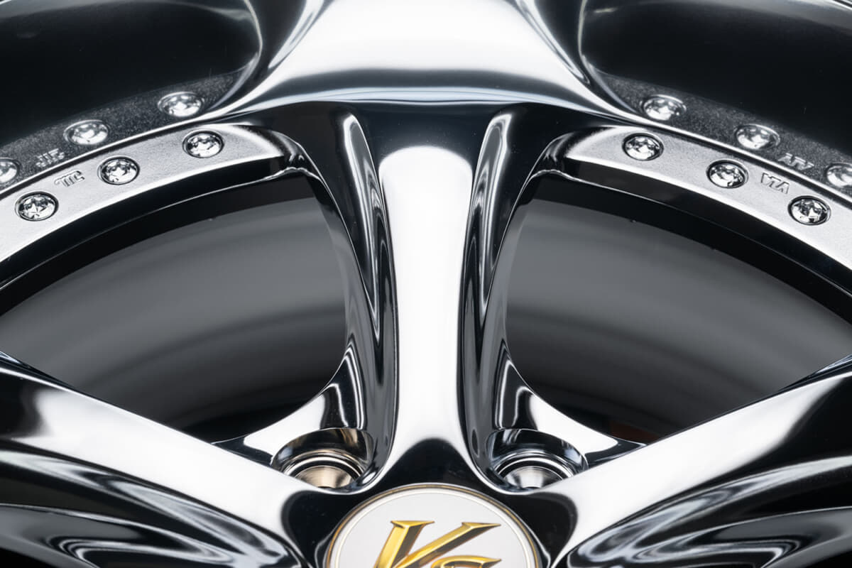 そして2026年──。大阪オートメッセ2026の会場で、ひときわ強烈な存在感を放っていたのが「VS KF♯ Chrome Edition」だ。ブースの中央で燦然と輝く、鏡面仕上げの5本スポーク。その圧倒的な輝きは、写真では伝えきれない。大阪オートメッセ2026でデビューとなった実物をぜひ体感してほしい。