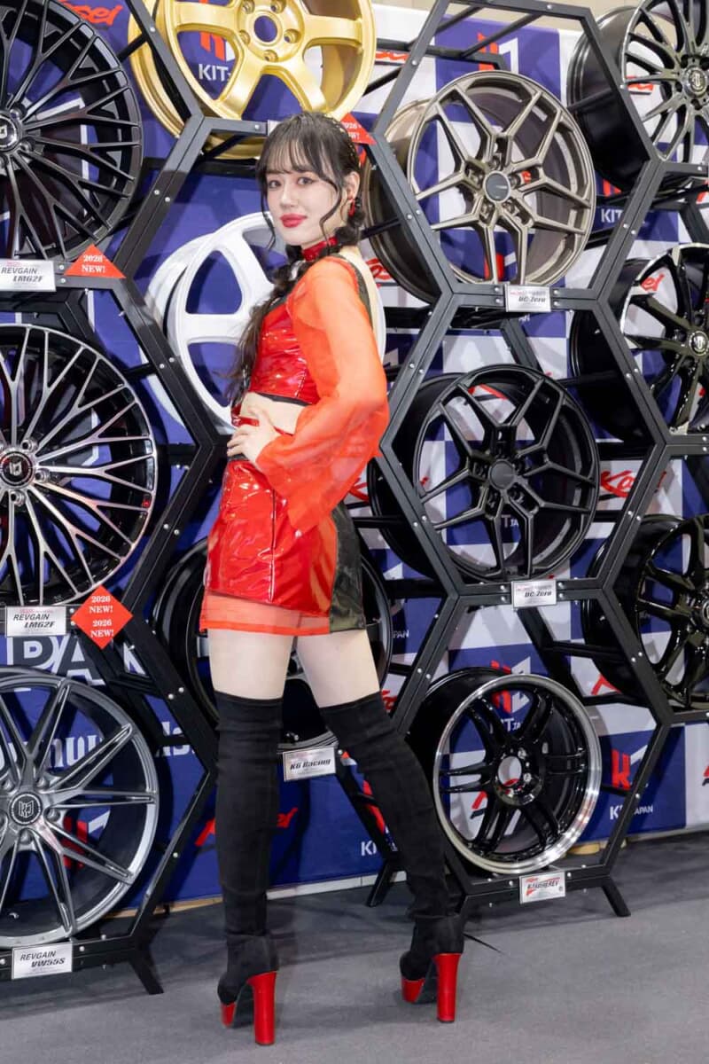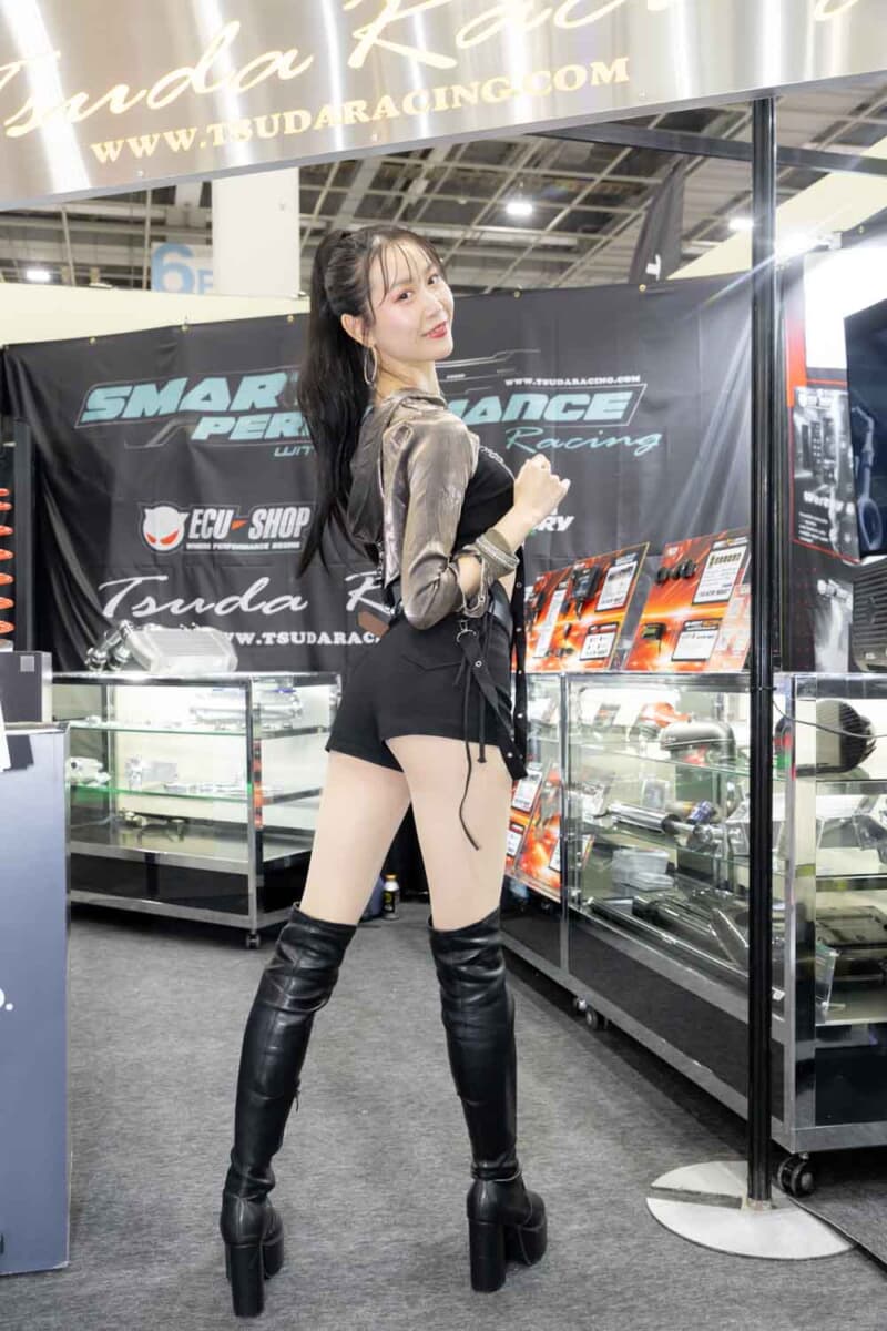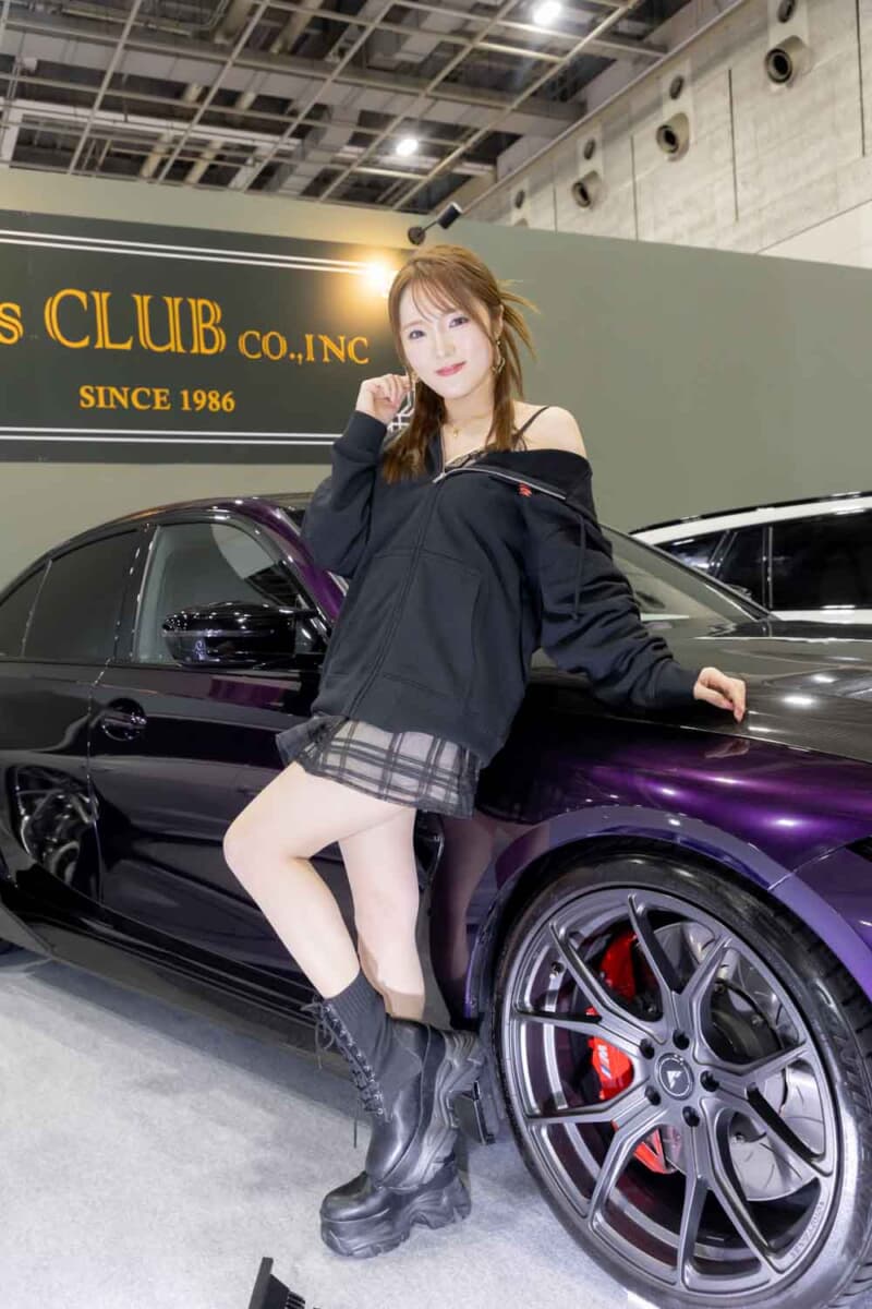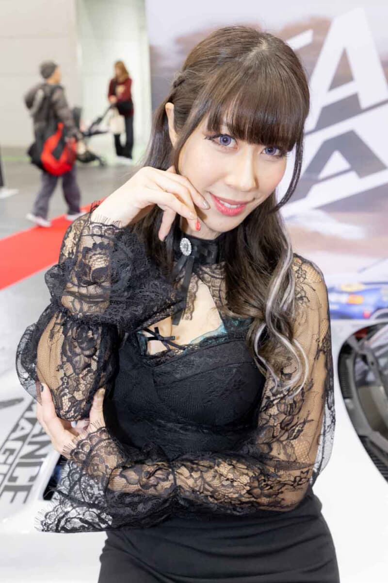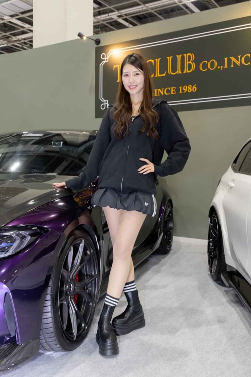 個性あふれる車両が並ぶなかで来場者の視線を集めているのは、ブースを彩るキャンギャルおよびコンパニオンの存在である。各メーカーやパーツサプライヤーのブースでは、ブランドイメージを体現する彼女たちが来場者を迎え、展示車両の横で華やかな雰囲気を演出している。